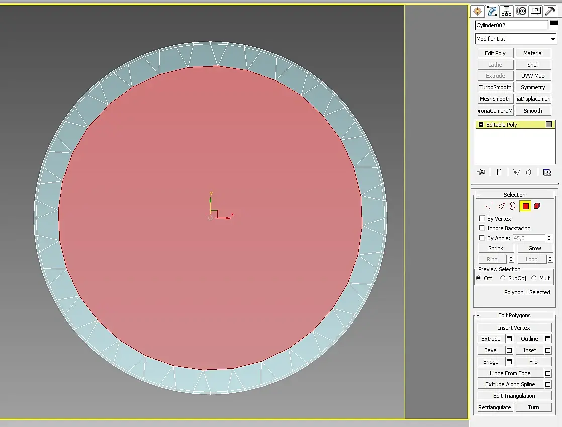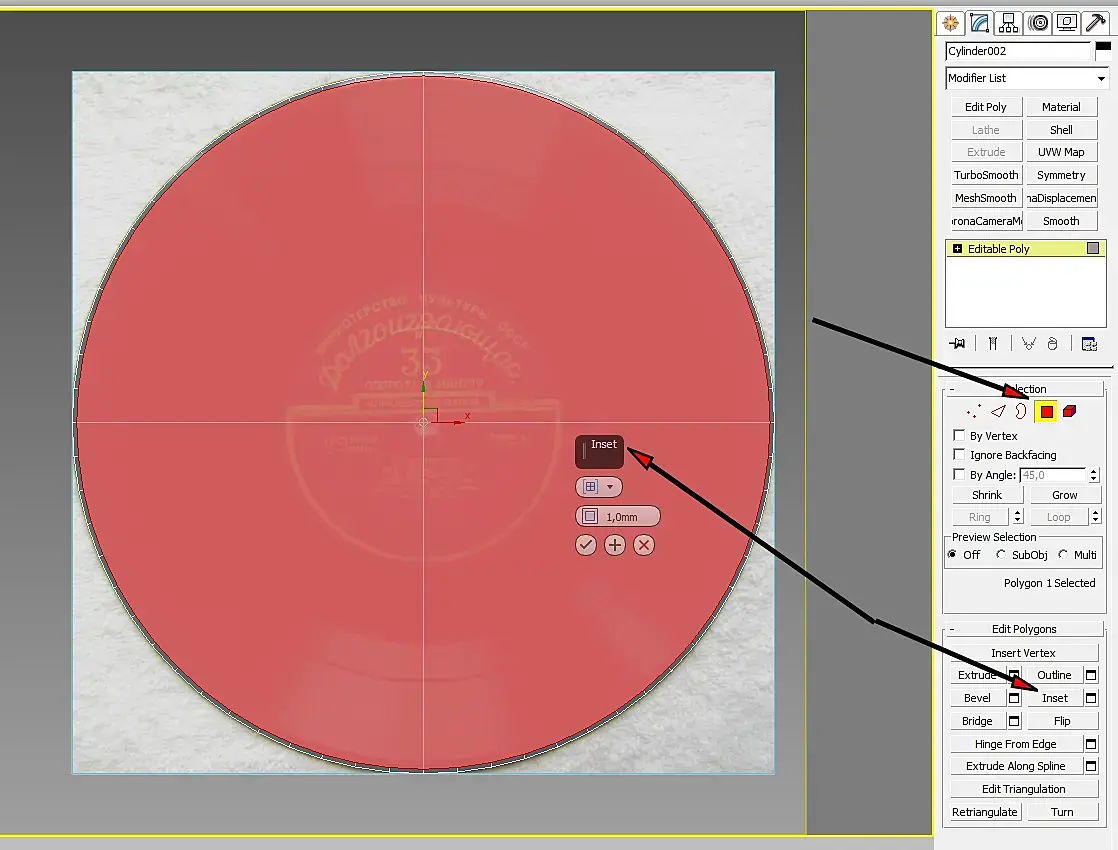 Выделяем плоскость и нажимаем inset для последующего уменьшения граней двигаясь к отверстию в пластинке. Делаем это несколько раз, пока не дойдем до отверстия посередине пластинки. Количество граней при этом уменьшаем до 8 ми.
