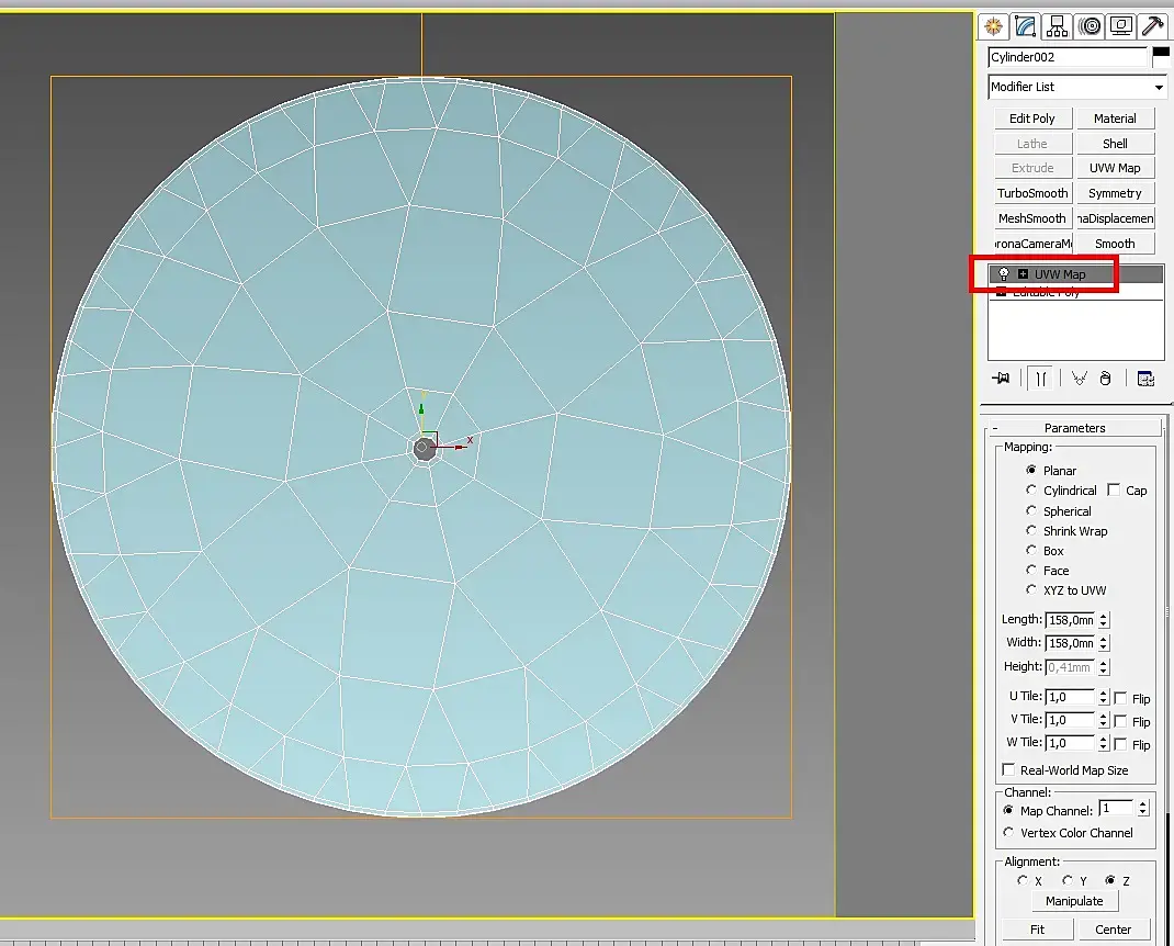 Осталось применить модификатор UVW Map и наша геометрия готова.