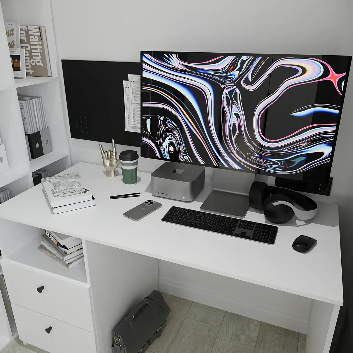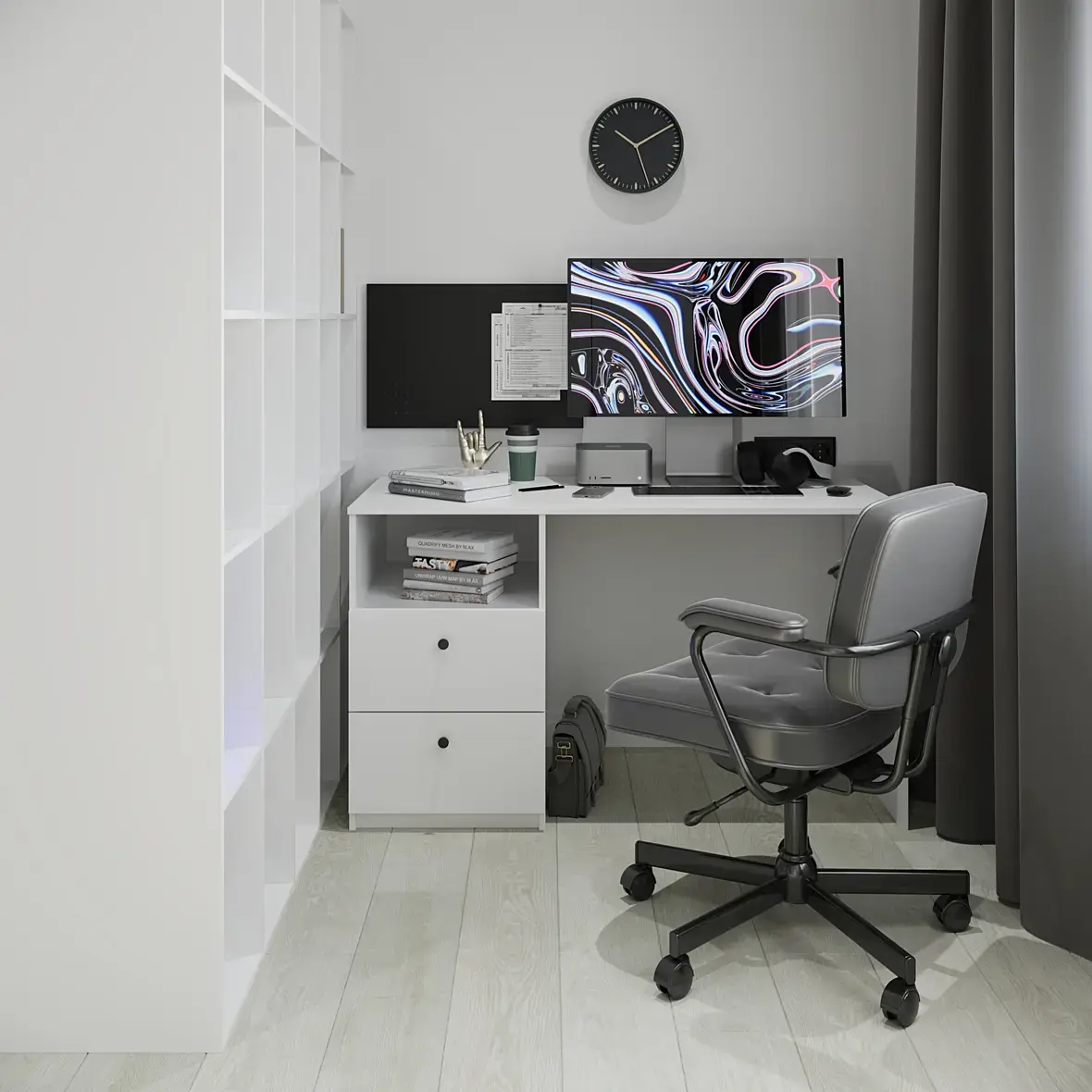 Про дизайн всё таки тоже напишу. Что раздражает. Зелёный пол, неприятно жёлтый диван, не понятная ваза с сухоцветом, хаотично развешанные фото с неопределённой тематикой. И тут бы как-то зонировать цветом рабочее пространство и пространство релакса.)