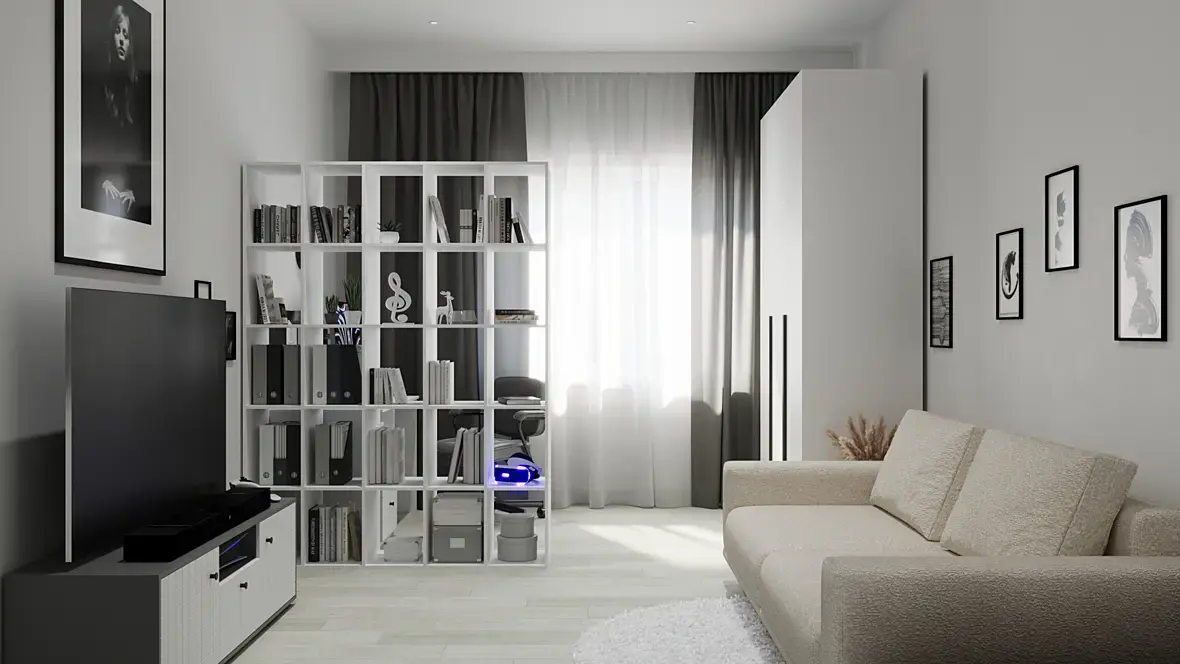 Свет плоский, будто свет из окна вообще ничего не освещает, а освещает всё плейнлайт сверху. Отсюда нет теней и контрастов. Надо пробовать освещать всё только через окно - небушком и солнышком. И кстати ещё, то что сам интерьер белый и матовый, тоже мешает создать объём. Будь он глянцевый чёрный, то было бы круче.)