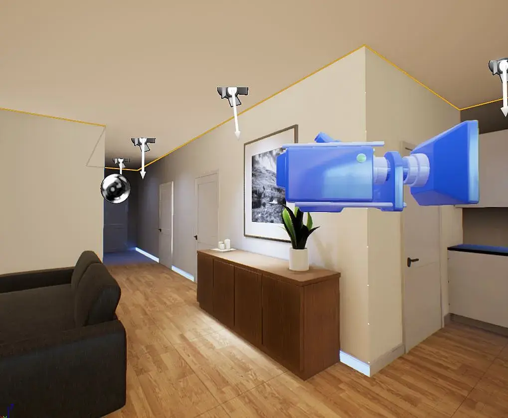 При нажатии на кнопку X в игровом режиме я могу управлять его светом. Из любого места в сцене. Если задать привязанный объект коллизии, команда будет действовать только внутри него. Также есть возможность добавить текст – подсказку, он появляется при пересечении объекта коллизии.