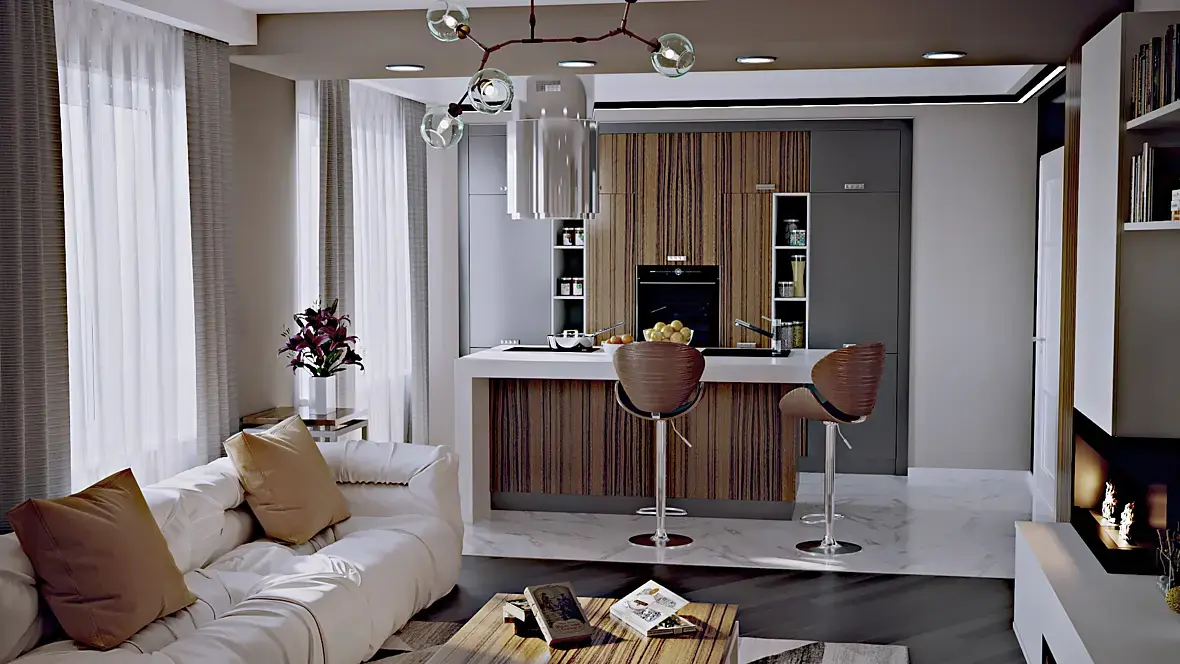 для начала выставите все камеры проверьте вертикали, добавьте качественную hdri карту и для начала отключите все источники искуссвенного освещения, пережде чем их включать разберите по композиции что больше в ракурсе хотите акцентировать, включите подстветку над теми предметами которые выделяются, как показывает практика солнце в интерьере не всегда уместно, после займитесь проработкой детальной текстур, не бойтесь делать вертикальные ракурсы. посмотрите больше картинок с разными ракурсами, обратитите внимание на то как там стоят камеры, на что они направленны итд. удачи