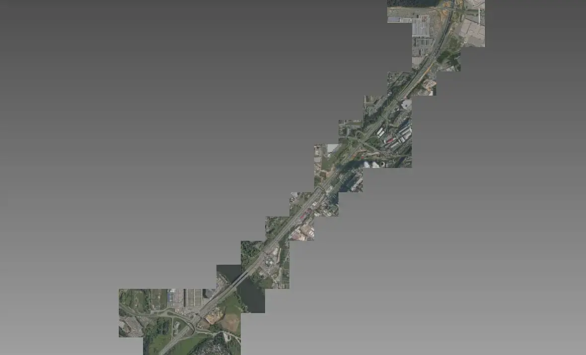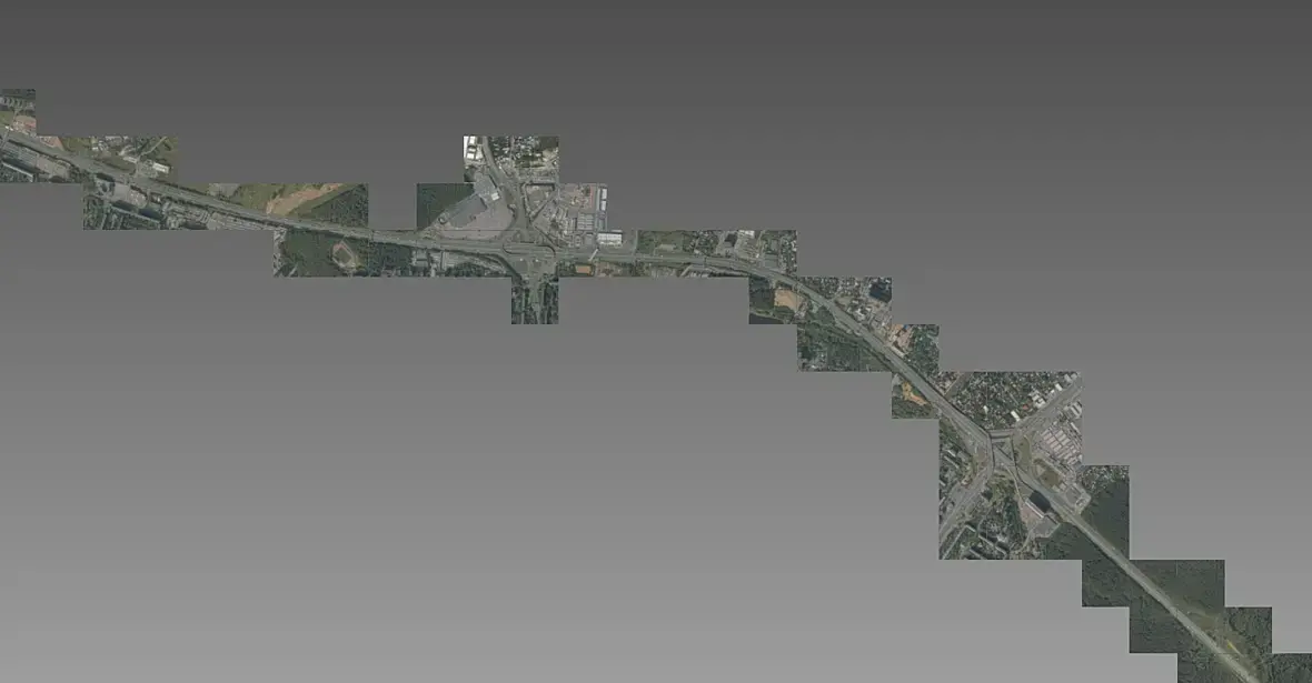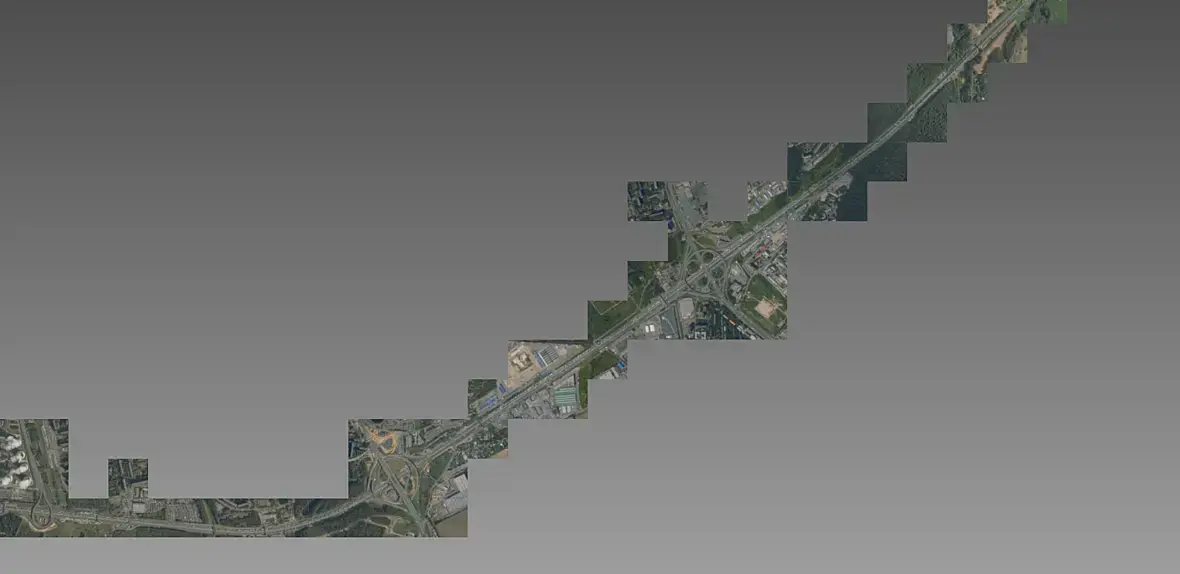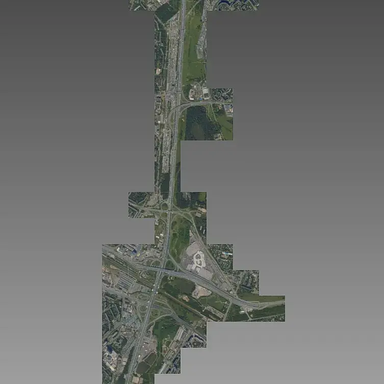 На текущий момент выгрузил съемку в высоком разрешении по всей протяженности МКАДа с разбивкой по тайлам, сейчас размечаю ключевые точки для дальнейшей стыковки кусков модели.