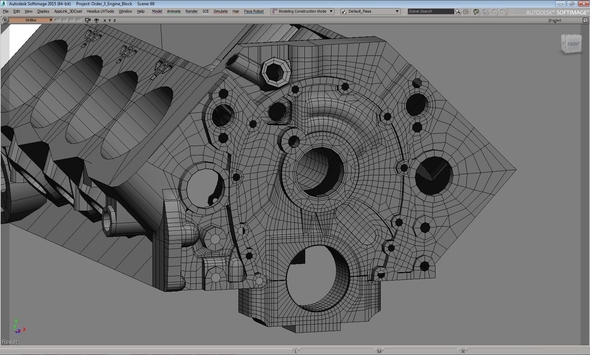 Я б общий полигонаж исходной сетки снижал. Все же постараться чтобы самые большие дырки (цилиндры) были восьмиугольниками в исходнике а остальные 4 или на край 6-ти. И доныщки в них не нужны понятно. И в идеале бы сделать "как в жизни" - чтоб в блоке гильзы стояли.