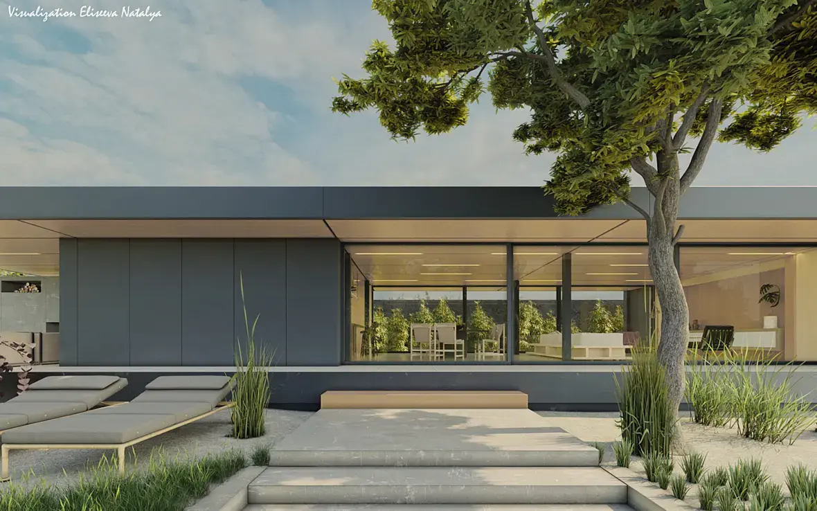 и я без претензий, мне интересен взгляд со стороны, я сейчас не сравниваю свои предыдущие работы с этой, там работа с интерьером проводилась достаточно продолжительная, тут допник к экстерьеру, который тоже не прошел. Материалы здесь максимально простые, на них не было упора, важно было представить внешний вид дома