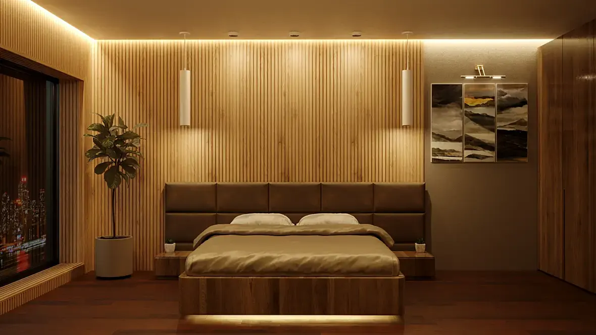 Ну в данном случае не надо было плейн с задником ставить параллельно оконному проему, а скорее всего поставить перпендикулярно камере, ну может покрутить мальца, чтоб визуально смотрелось нормально, а то сейчас фон деформипровался. Ну а если заморочиться чутка, то можно на боксы накинуть самосветящейся мат с текстурой фасада ночного, но тут это лишнее конечно. Просто плейн поверните.