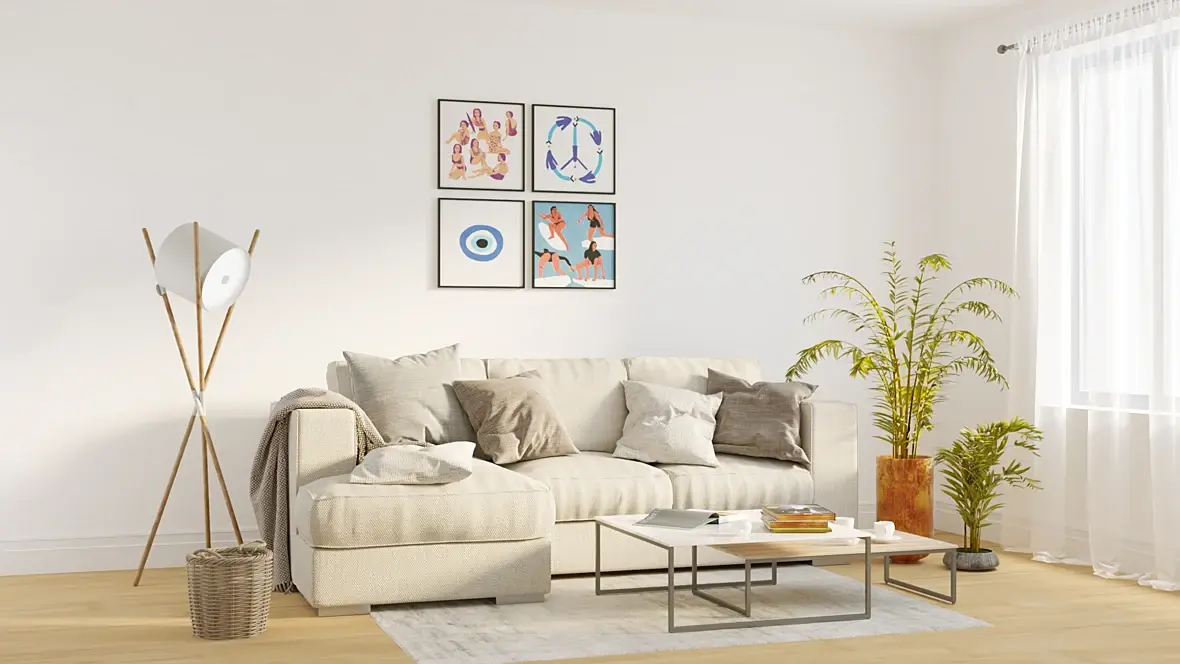 На мой взгляд слишком пересвечено, я бы сделал темнее и акцентировал свет из окна, чтобы появился светотеневой рисунок, сейчас теней нет вобще. Ну и фон за окном нужно выставить. По материалам не буду расписывать, тут уже на свой вкус настраивайте, но совершенствоваться есть куда