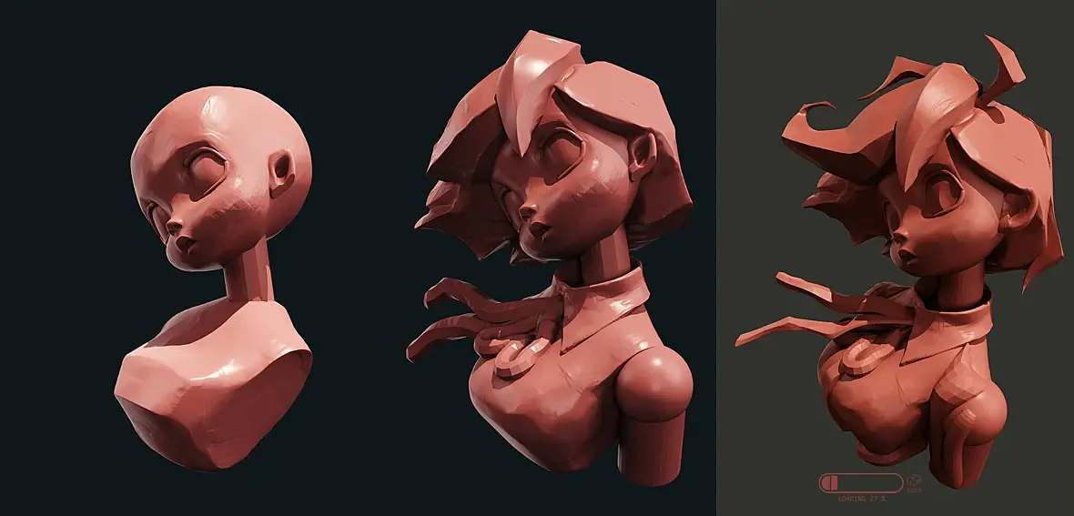 Лепил по этим наброскам https://www.artstation.com/artwork/Pm089n