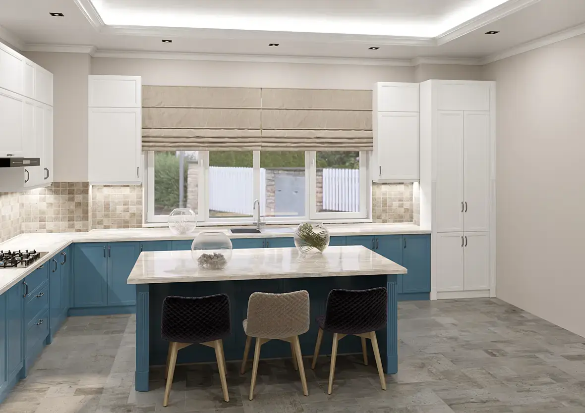 В целом с организацией кухни есть проблемы, придётся нырять в эргономику. А потом в дизайн. Оно Вам надо? Или Вы на 3д всё же сконцентрироваться хотите?