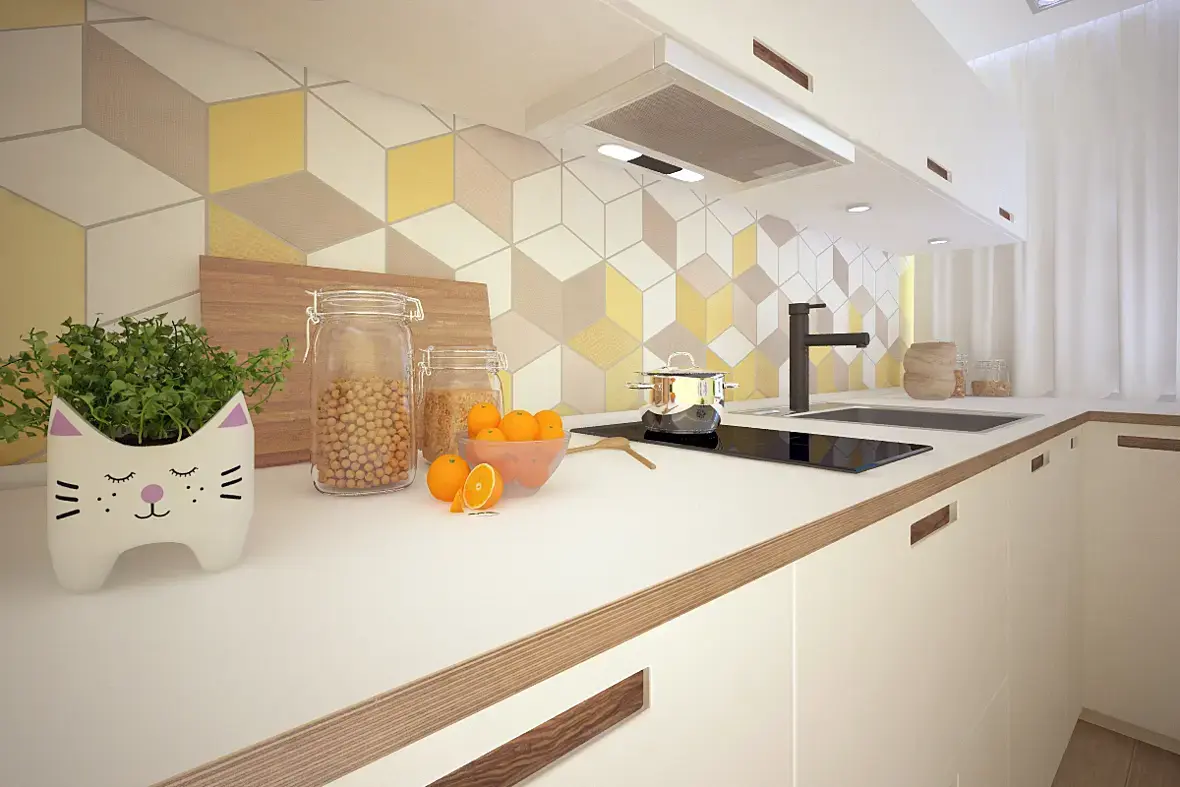 Во-первых источники света лучше ставить на нейтральные цвета, выше 5100... у вас по ощущениям 4100. Потолок должен быть белый\серый но не в цвет лимонада. Во-вторых Ставьте камеру ровно, косые камеры подходят для предметного виза и то если умеешь. Научитесь пользоваться " Miscellaneous" в настройках камеры, у Вас изображения не охватывают всего и просто обрезают мебель. Смотрите видео-уроки по освещению и камере. Это для начала.