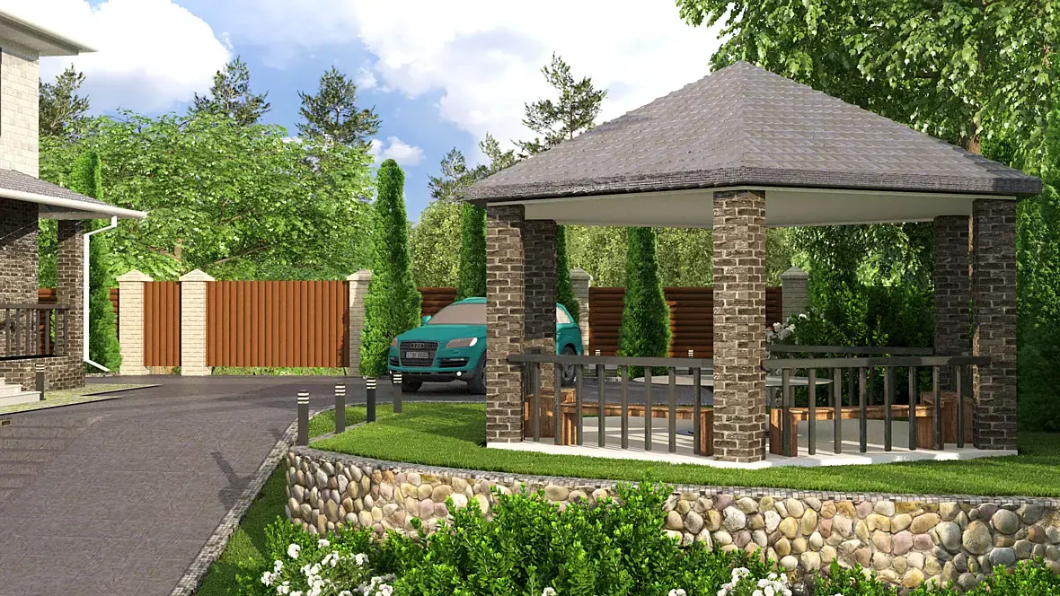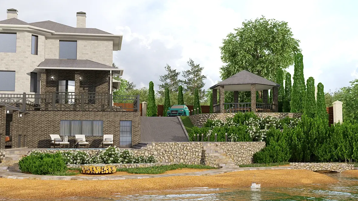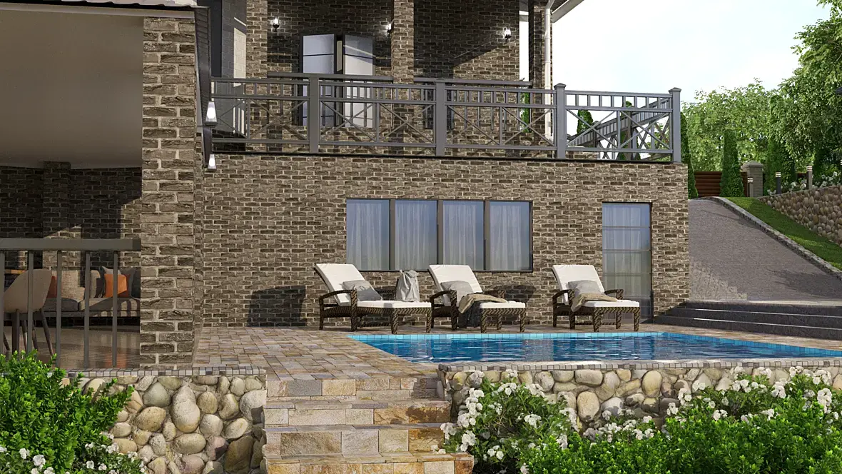 Если это 3д макс, попробуйте проработать материалы.. а именно отдельно текстуры бамп, отдельно рефлект.. местами виден Тайлинг текстур, нужно научиться делать бесшовные.. Если цель продать заказчику - то и так сойдет.. а если цель художественная работа - дикий камень можно замоделитьб методом Ну может быть Скаттер. Кирпич интересен был бы через флор генератор.. Или же если не он, то можно так же Бамп прорисовать для кирпичного материала. Дорога - одноплоскостной асфальт.. Для проектной графики сойдет, но для художки можно вообще поработать над дорогой отдельно.