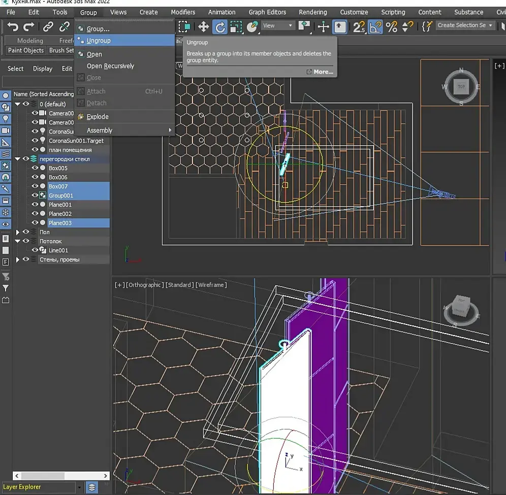 Свет надо ставить под таким углом, чтобы грани кровли читались лучше.