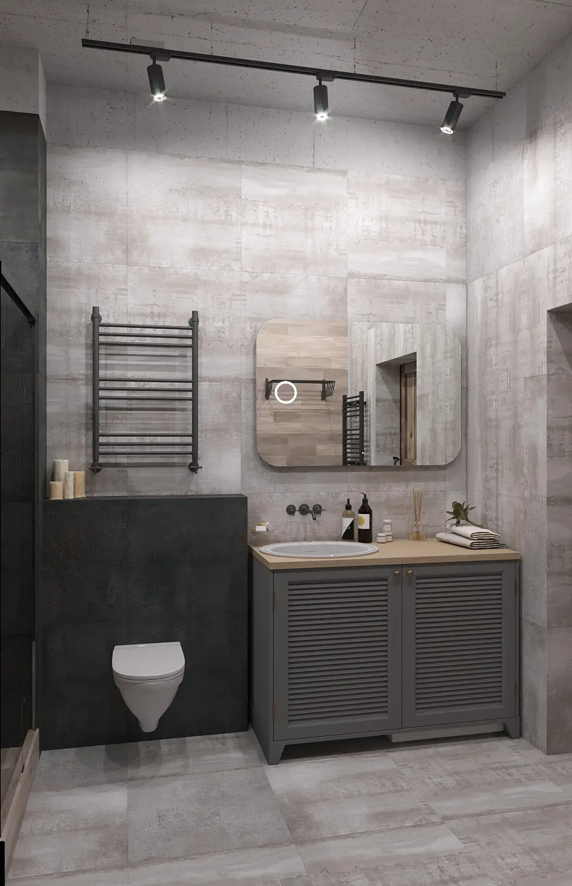Пока жду правки по первому проекту, (там кстати все помещения отрисовал, скоро выложу на Ваш суд тоже), работаю над первым моим лофтом. Как мне кажется не совсем вышло передать настроения лофта, что бы темно и камерно, но комфортно. В общем, буду благодарен за конструктивную критику.