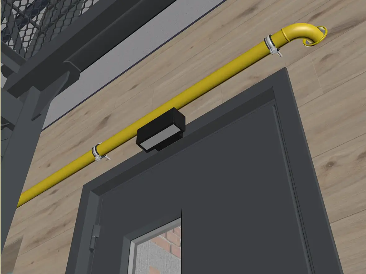 На первом этапе думал ограничится только дверьми нижнего этажа, потом решил что безопасность важнее, и они появились на всех этажах выше Безопасность здания, а не тех кто будет ночью там гулять, для них света достаточно. А вот охране будет не очень видно чего там сверху у двери происходит.