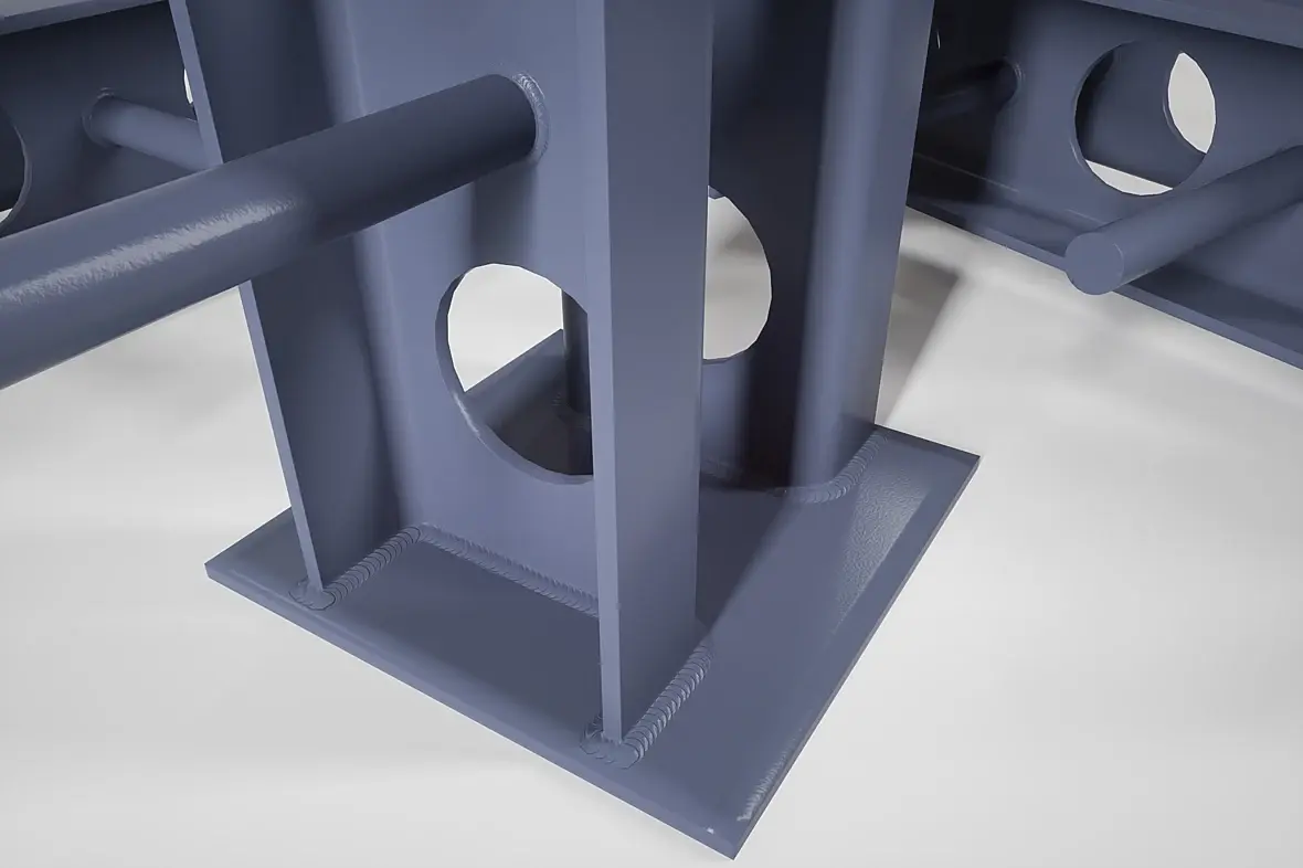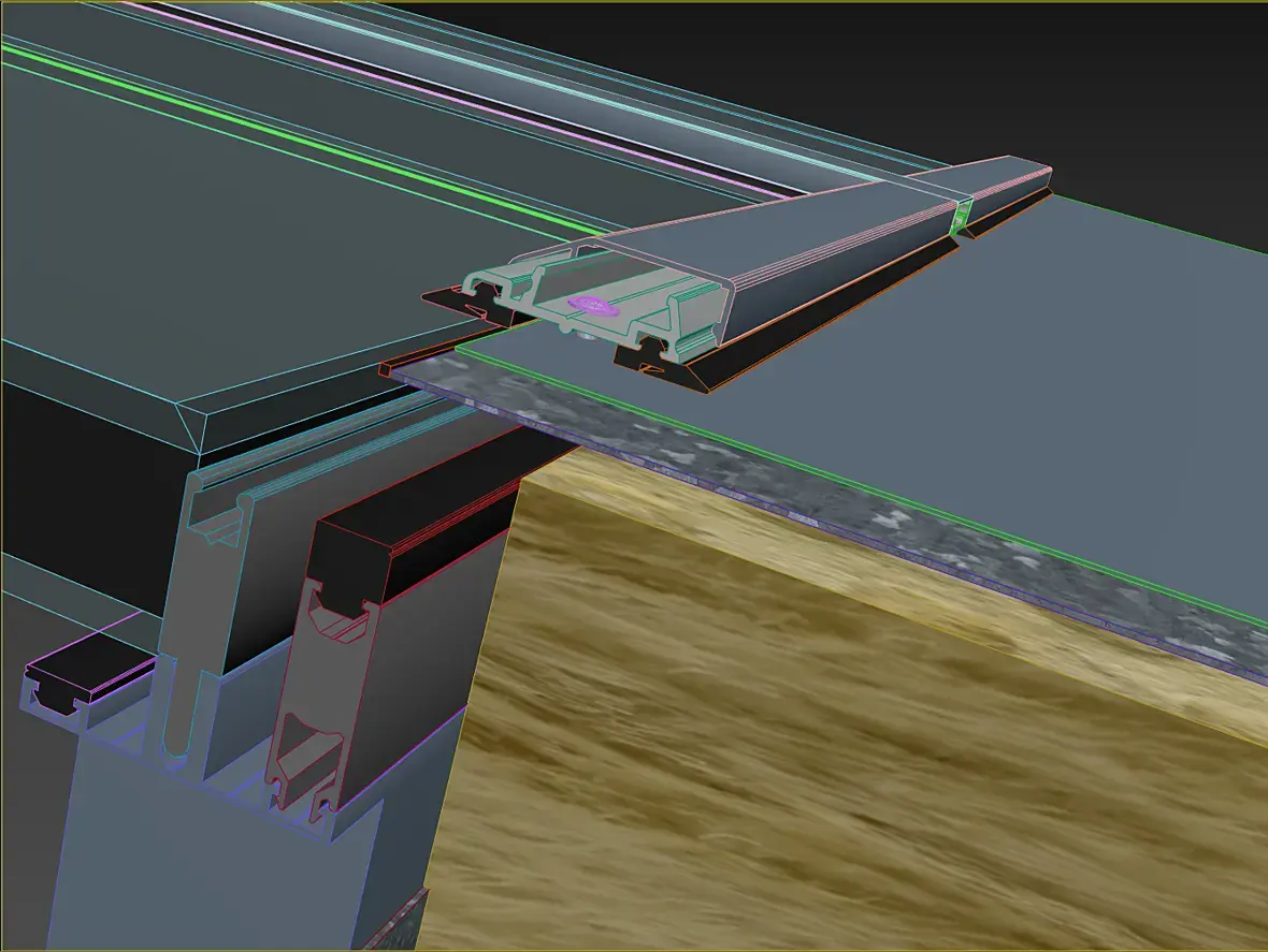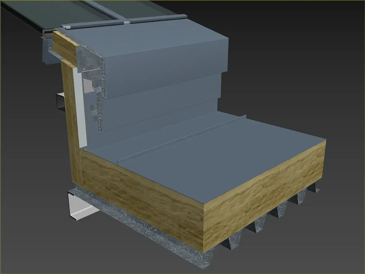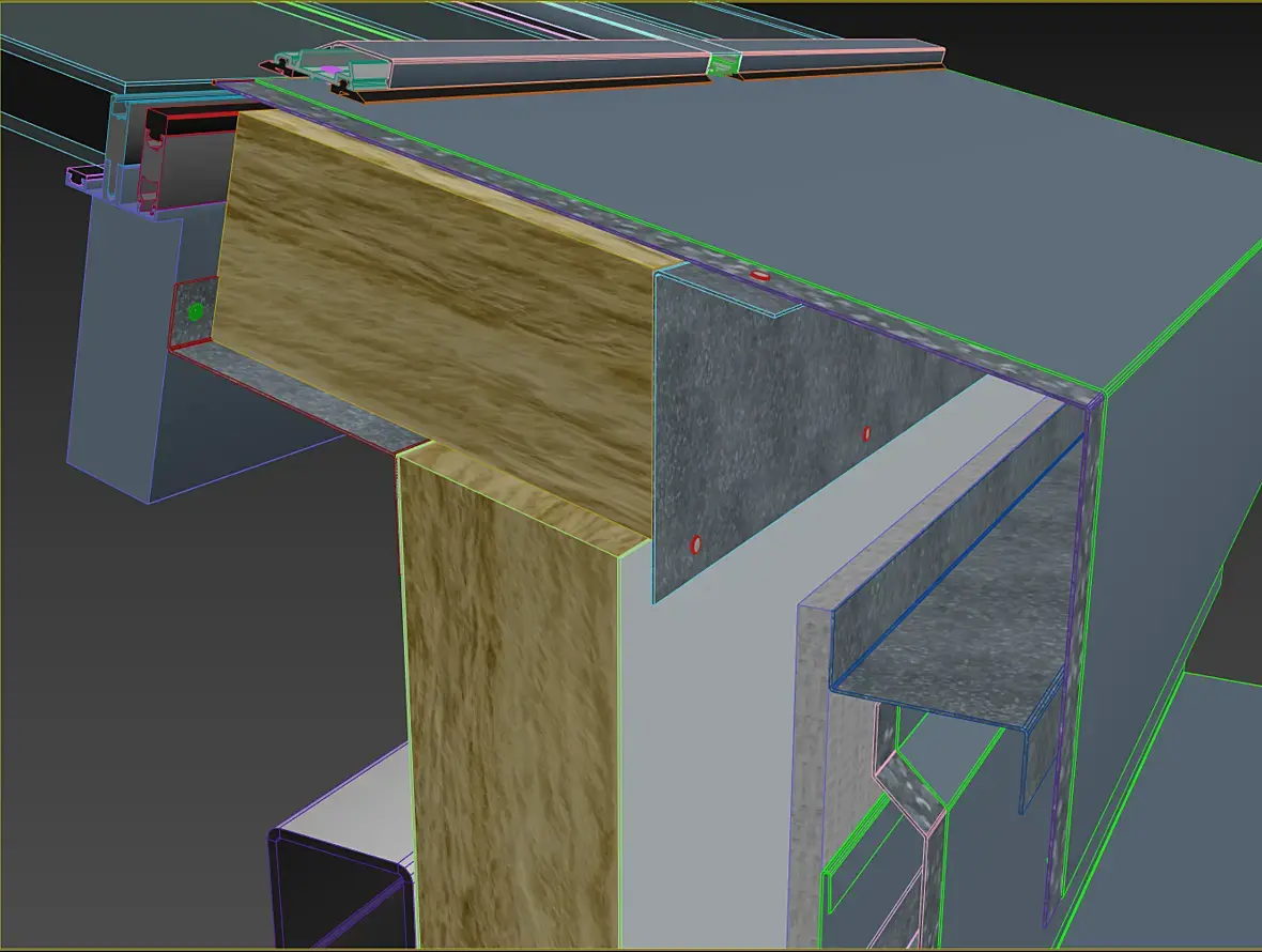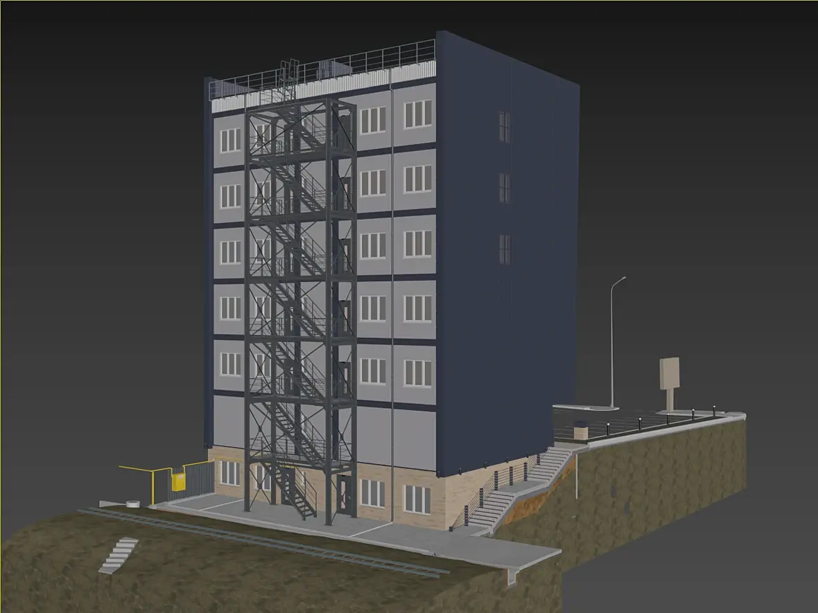 И стела. Идея очень простая и не новая. Реклама нужна, на здание на фасад не хочу лепить. Да и этажей много, так же как арендаторов или хозяев, куда это все писать, а тут есть куда и этаж сразу видно. Выполнил её из металлоконструкции и клееного бруса. Без света и тени, конечно тот еще вид, так же как и перфорации. Но это позже