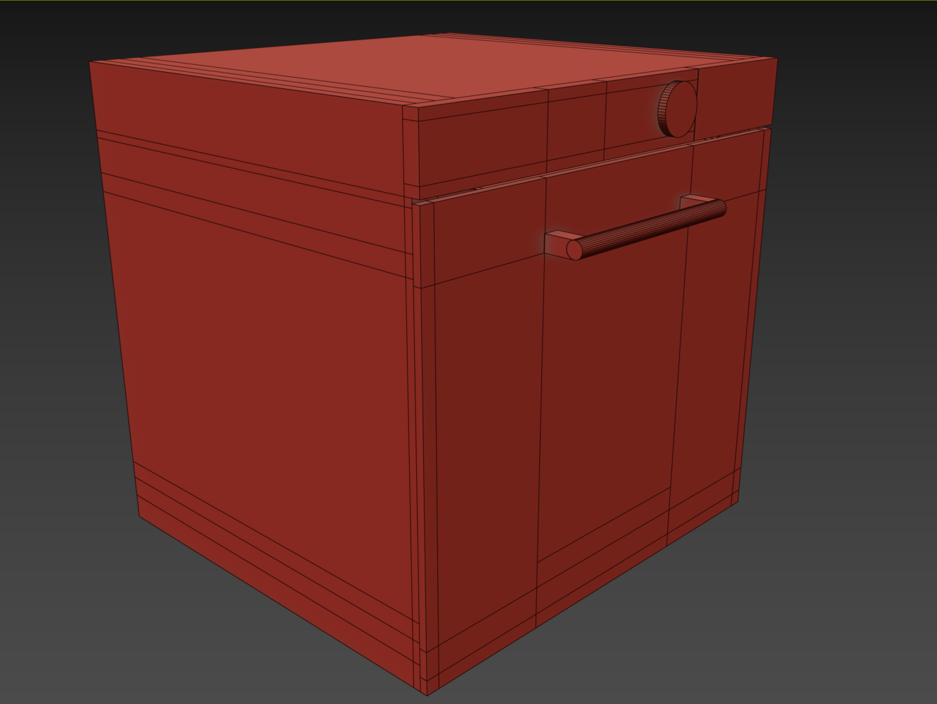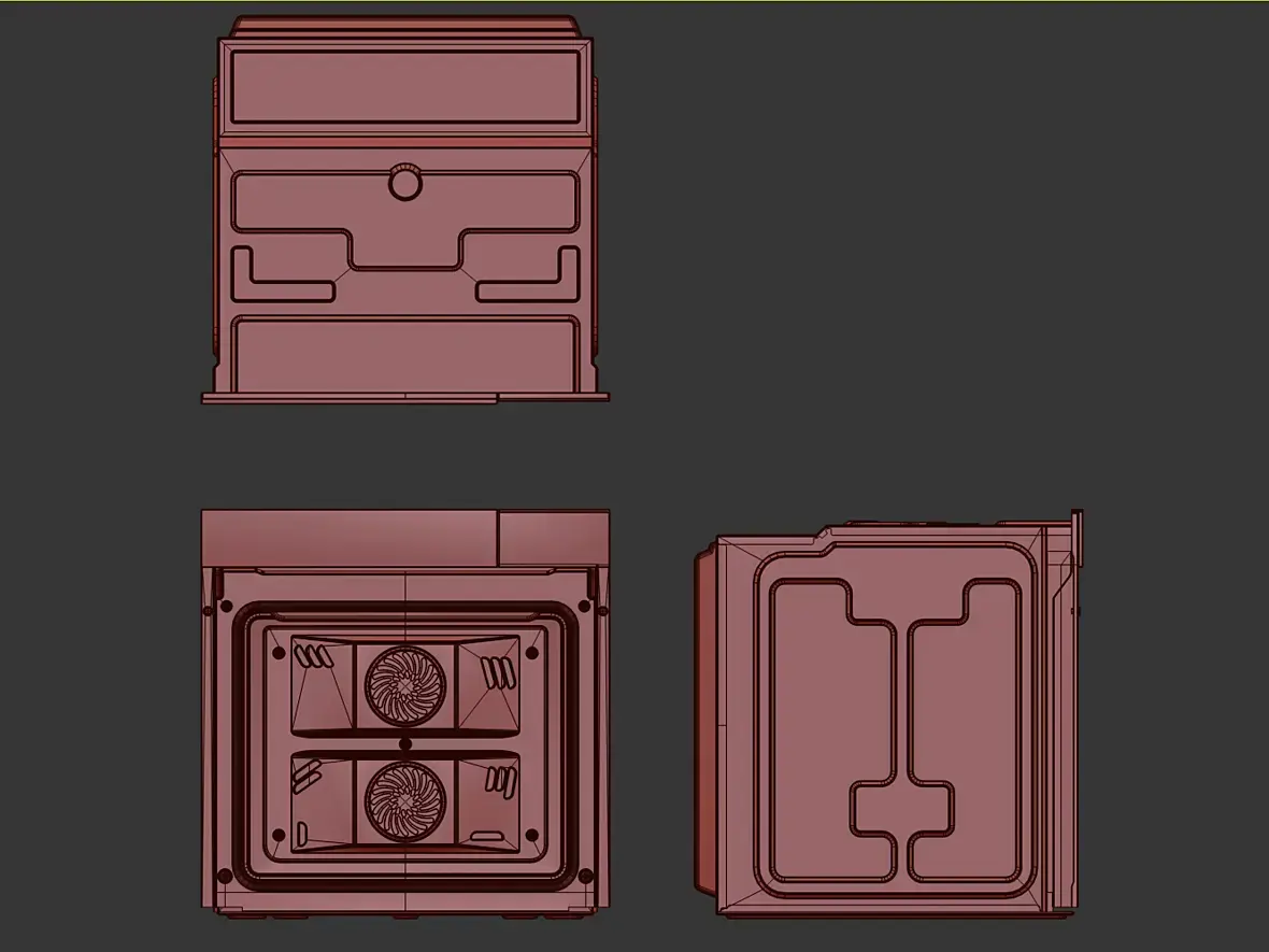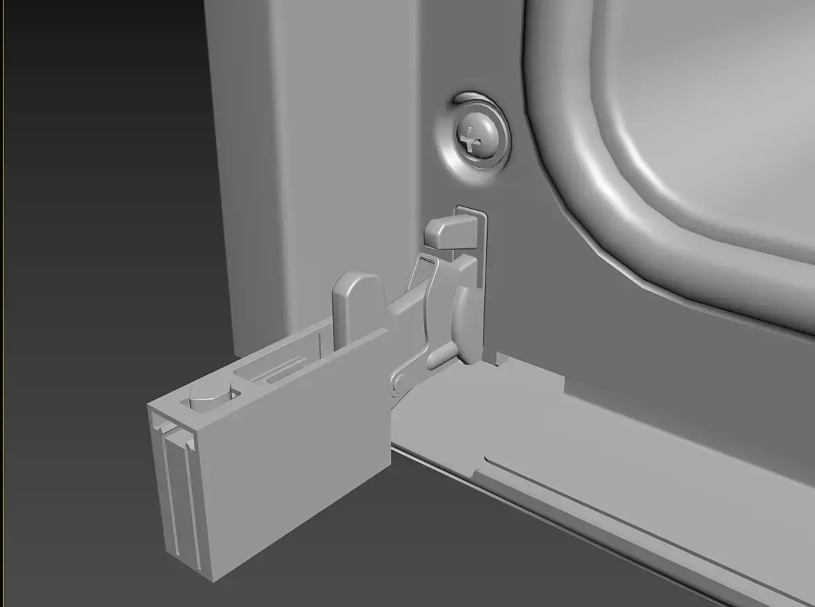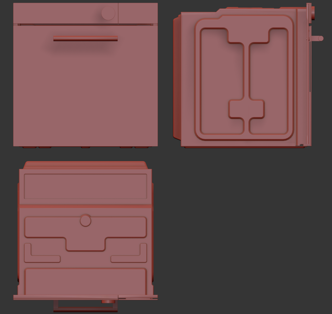 Вех приветствую. У меня вроде с геометрией всё, для текущей задачи, как и писал выше, навесное внутреннее пока не буде делать. Переработал в части уплотнителя и отбойников створки, младшего брата моего персонажа глянул, действительно накосячил. Так же меня смущала глубина шкафа, внутренняя рабочая, проверил объём по литрам, действительно много, подогнал, вроде лучше. В верхней части добавил детали на средний элемент, между лицевой панелью и основной выштамповкой. Сделал лицевые панели, джойстик и ручку.