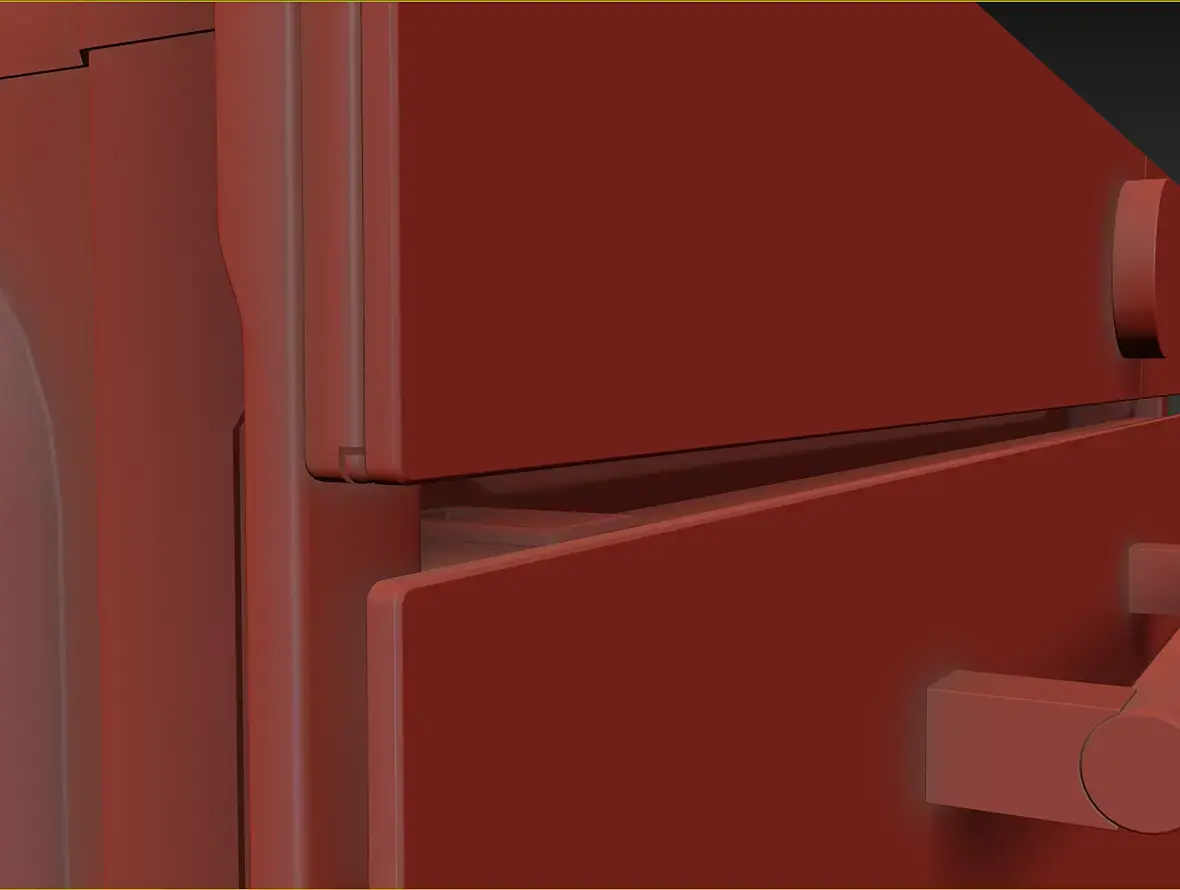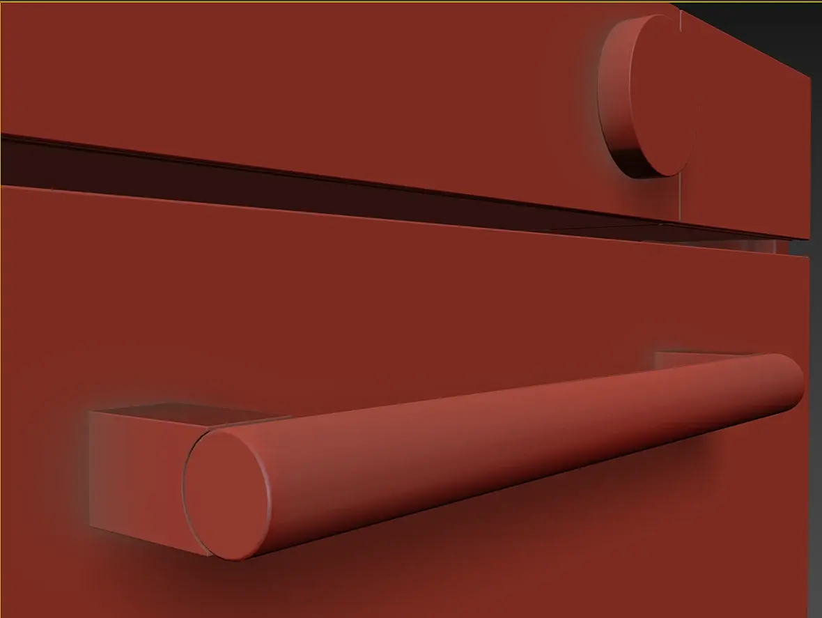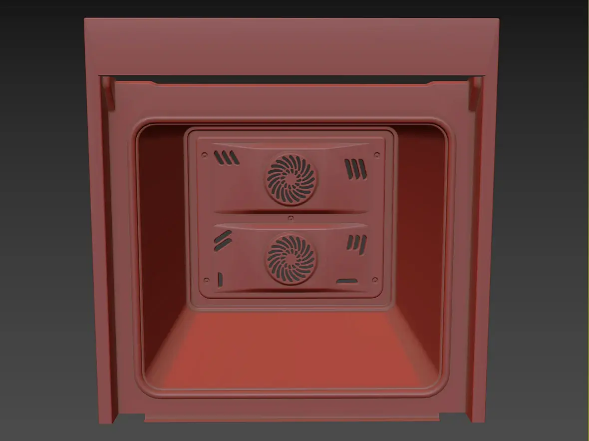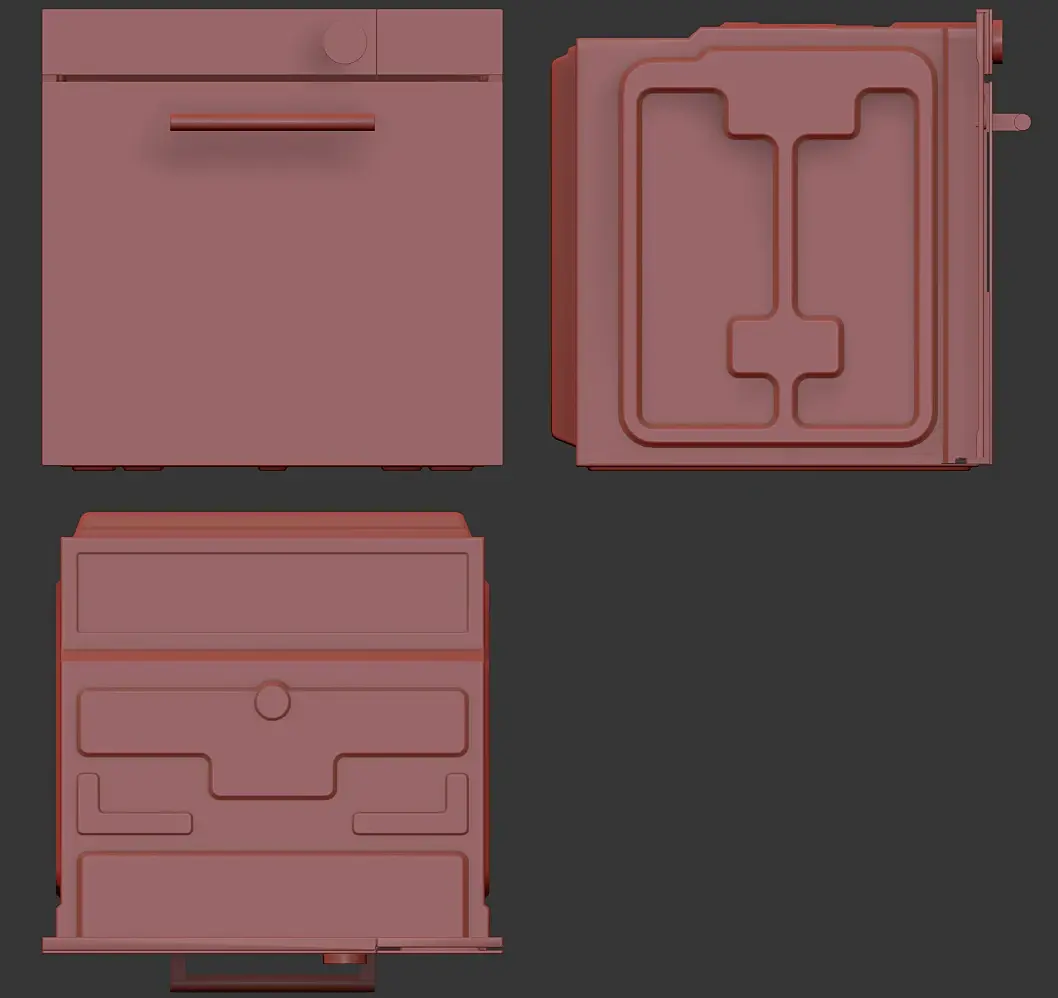 Вех приветствую. У меня вроде с геометрией всё, для текущей задачи, как и писал выше, навесное внутреннее пока не буде делать. Переработал в части уплотнителя и отбойников створки, младшего брата моего персонажа глянул, действительно накосячил. Так же меня смущала глубина шкафа, внутренняя рабочая, проверил объём по литрам, действительно много, подогнал, вроде лучше. В верхней части добавил детали на средний элемент, между лицевой панелью и основной выштамповкой. Сделал лицевые панели, джойстик и ручку.