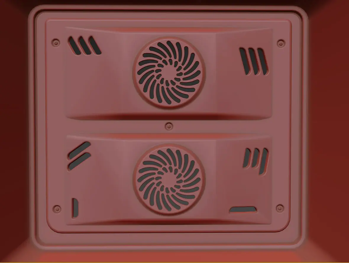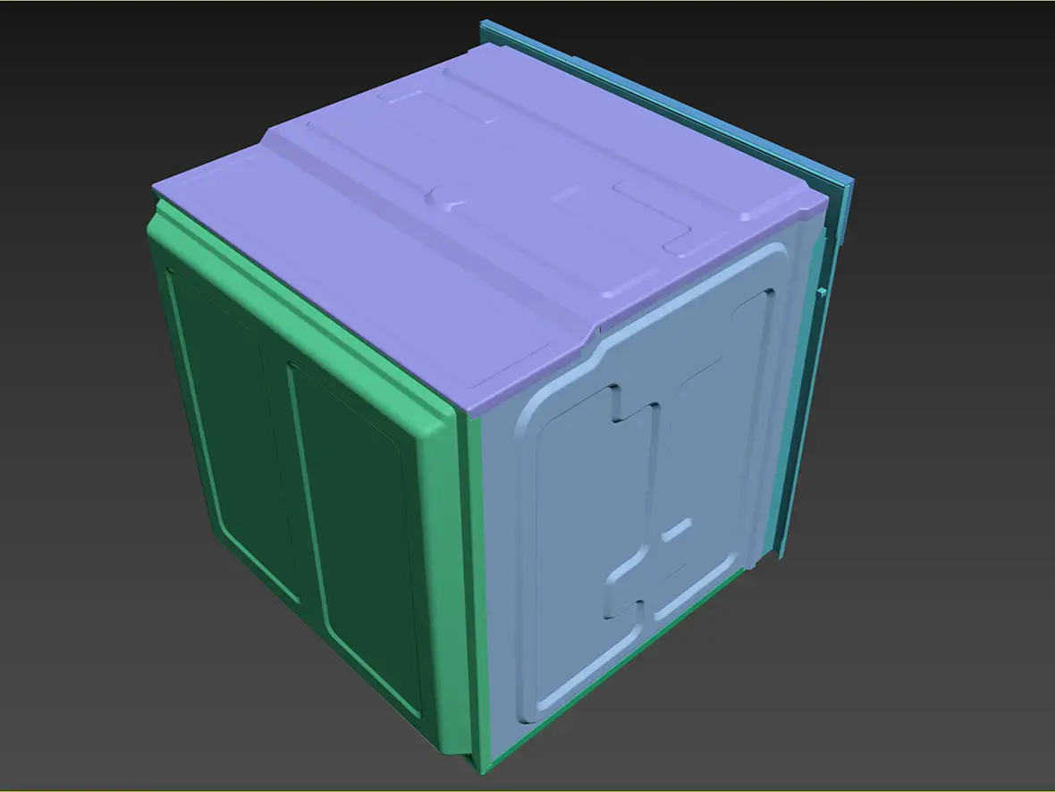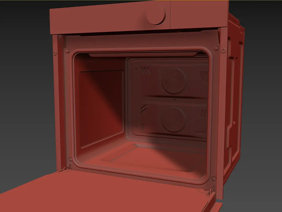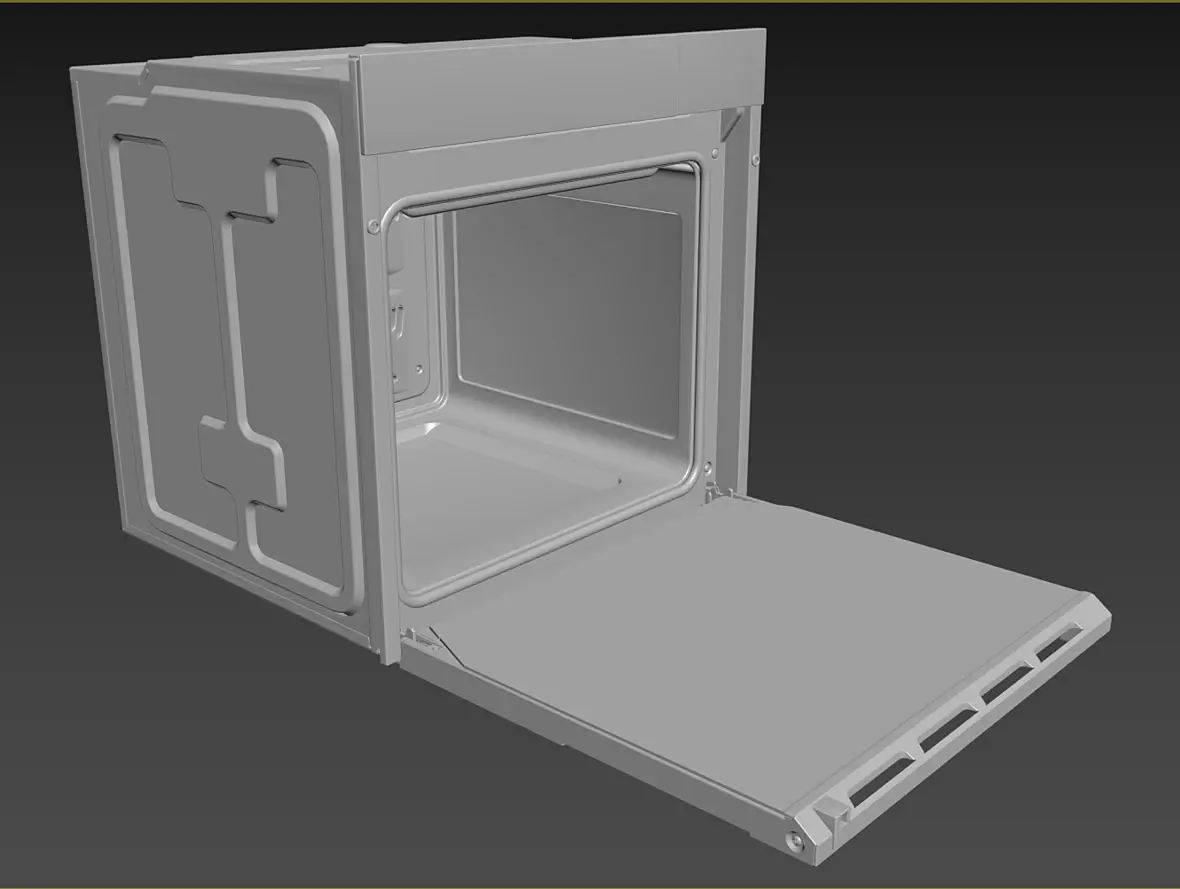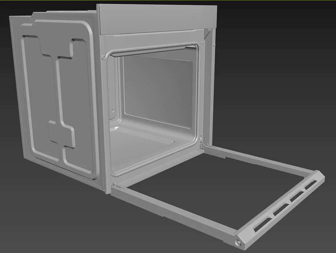 Вех приветствую. У меня вроде с геометрией всё, для текущей задачи, как и писал выше, навесное внутреннее пока не буде делать. Переработал в части уплотнителя и отбойников створки, младшего брата моего персонажа глянул, действительно накосячил. Так же меня смущала глубина шкафа, внутренняя рабочая, проверил объём по литрам, действительно много, подогнал, вроде лучше. В верхней части добавил детали на средний элемент, между лицевой панелью и основной выштамповкой. Сделал лицевые панели, джойстик и ручку.