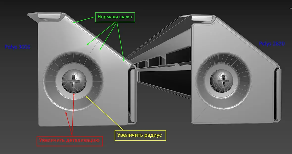 Хорошее замечание. Обычно так и делаю в самом конце, так это уже чисто за реализм и к технички не имеет отношение. Пока техничка не закончена пусть так будет. Что бы не быть голословным, пару моделей открыл на вскидку...