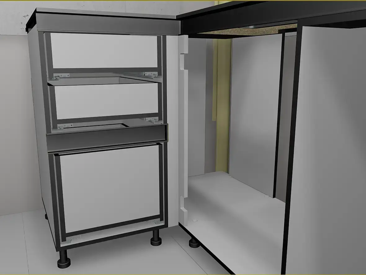 если отдать это кухонщикам со своим софтом, не проще ли будет? Не очень понятно, зачем все это моделировать. Или вы производите кухни?