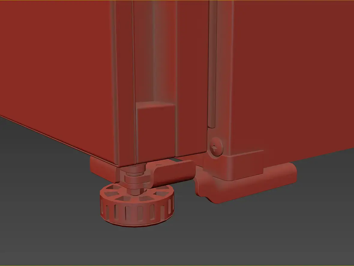 Так же, сегодня позанимался оптимизацией, ещё подчистил полигоны. Завтра надеюсь финал будет. Осталось добить кронштейны ручки и толчковый механизм. Плюс надо сделать будет установочный комплект, который применяется для стыковки двух или более холодильников, морозильников.