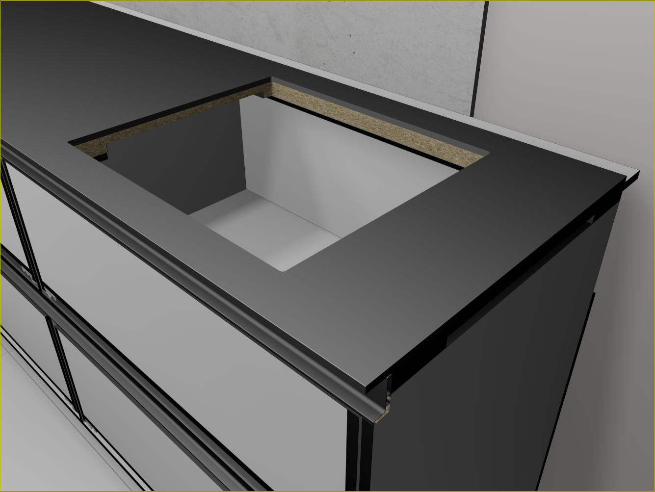 А финальный прогресс на сегодня так себе... Проработал конструкцию столешницы, она потянула за собой правки по корпусу модуля под мойку.