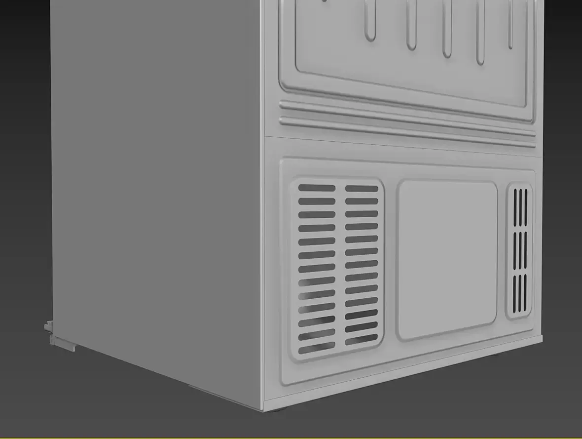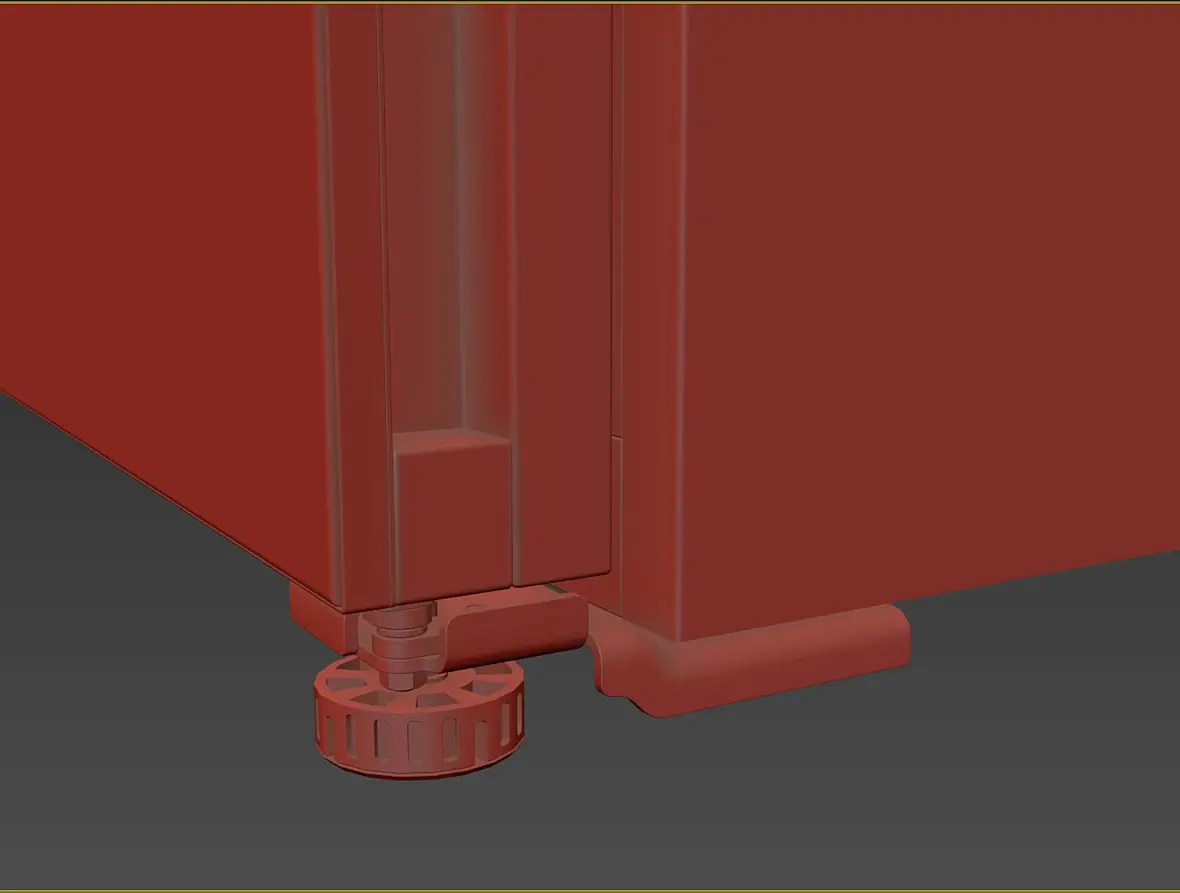 Так же, сегодня позанимался оптимизацией, ещё подчистил полигоны. Завтра надеюсь финал будет. Осталось добить кронштейны ручки и толчковый механизм. Плюс надо сделать будет установочный комплект, который применяется для стыковки двух или более холодильников, морозильников.