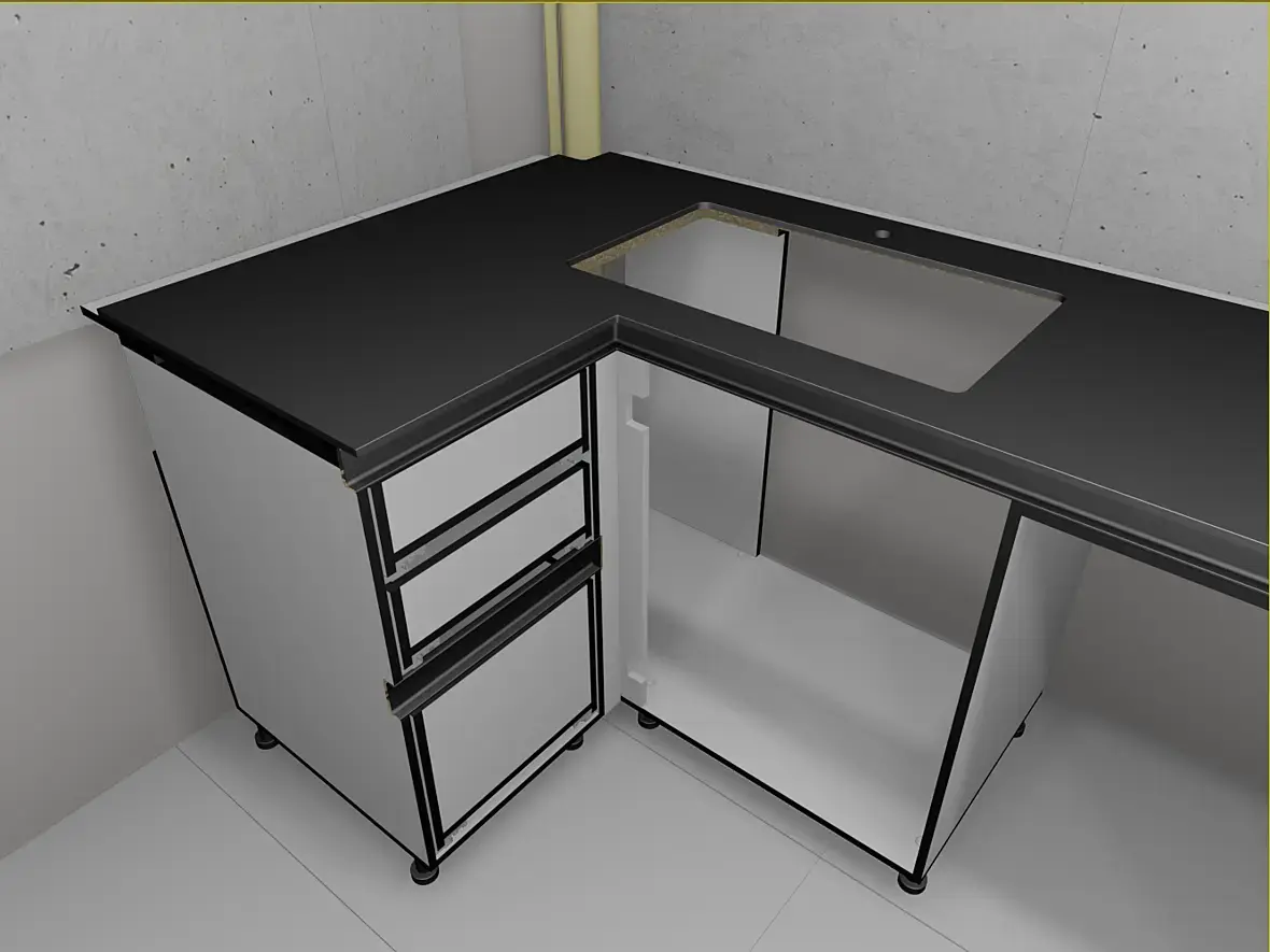 А финальный прогресс на сегодня так себе... Проработал конструкцию столешницы, она потянула за собой правки по корпусу модуля под мойку.