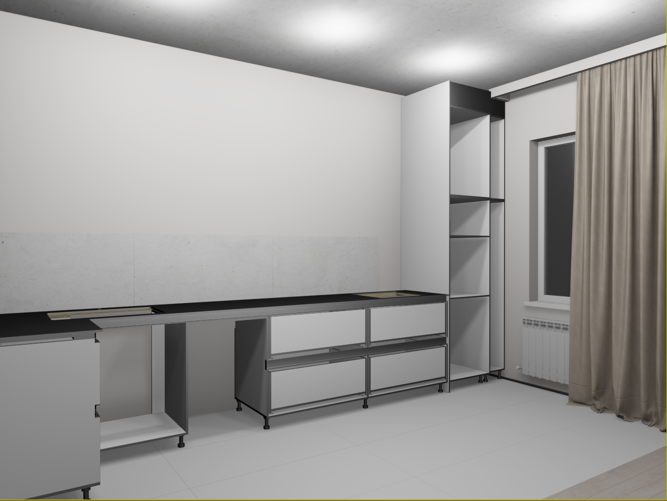 Приветствую. Закончил я подготовку всех компонентов, которые у меня не хватало для проекта в котором и нужны были и духовой шкаф и холодильник. А задаче такая стоит, имеем объект, квартира, с чистовой отделкой и мебелью. Изначально у заказчиков была мысль не трогать ни чего и пожить как есть, но не смогли смериться с тем что существует. Было принято решение заменить мебель. Сложность для меня заключается в том, что нет полных данных о том что за мебелью. И нельзя само помещение, максимум замена полотна натяжного.