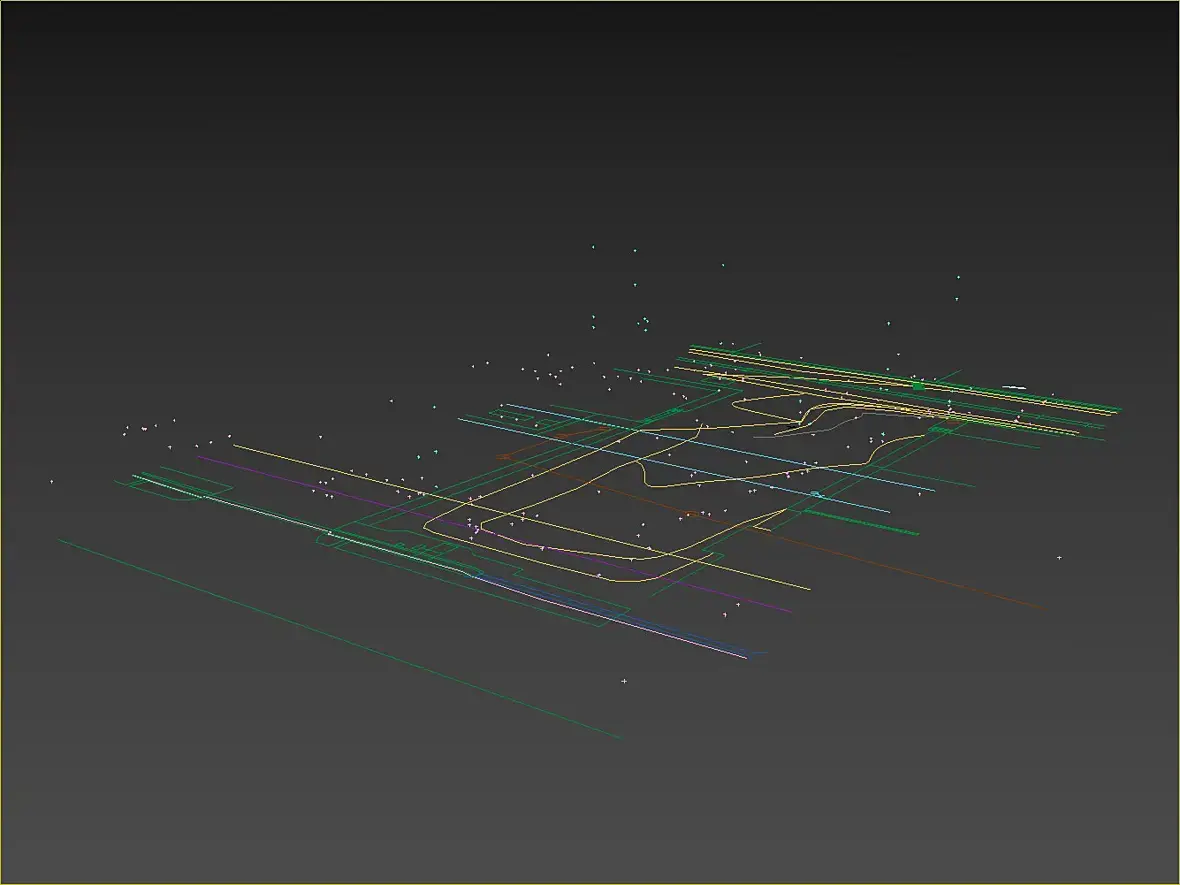 По результатам прихожу к выводу что мне нужно искать новых геодезистов, или эти пусть поверку оборудованию делают. Свой я проверяю регулярно. Дальше накидал основной объем по топографической съемке и получил такое: