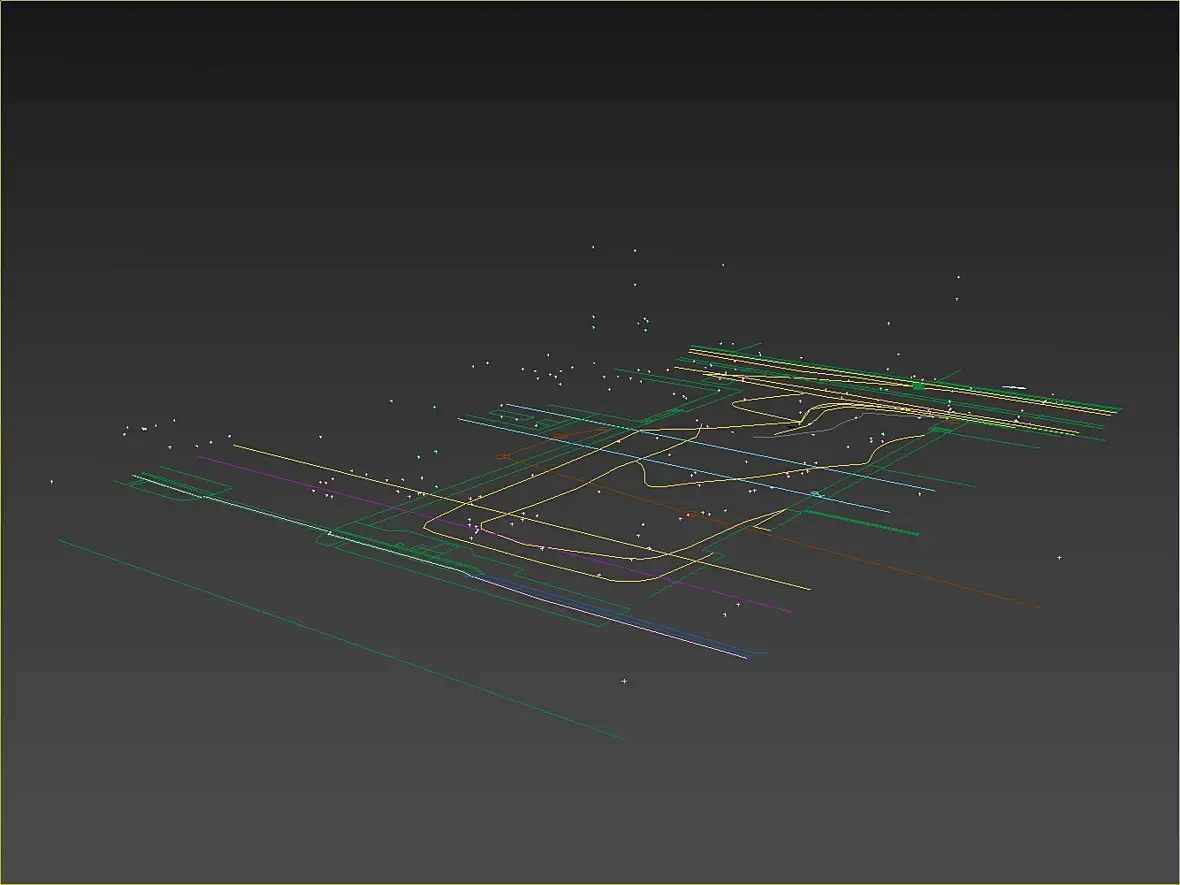 По результатам прихожу к выводу что мне нужно искать новых геодезистов, или эти пусть поверку оборудованию делают. Свой я проверяю регулярно. Дальше накидал основной объем по топографической съемке и получил такое: