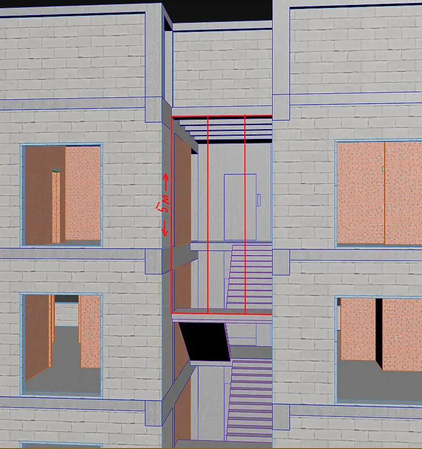 Следующее изменение по окнам, как я писал выше, попросили добавить окно с торца здания на последнем этаже, для мини кухни, сказано сделано: