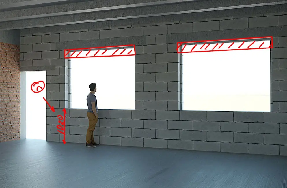 Высота проема получился именно такой, исходя из размера блока и толщины клея, все просто, с нижним по интереснее, я знаю что у меня в здании планируется 2 кухни. И обе они под окно, на одной из них будет посудомоечная машина, скорее всего) Вот этим и руководствуюсь, что бы когда изготовится мебель столешница подошла прям под окно, вместо подоконника. Эти же размышления, привели к еще одному дополнению по тем самым окнам где кухни. Рас АГБ у нас приятен в обработке, то логично на мой взгляд сделать это сразу. Добавляю вот такую крокозяблину: