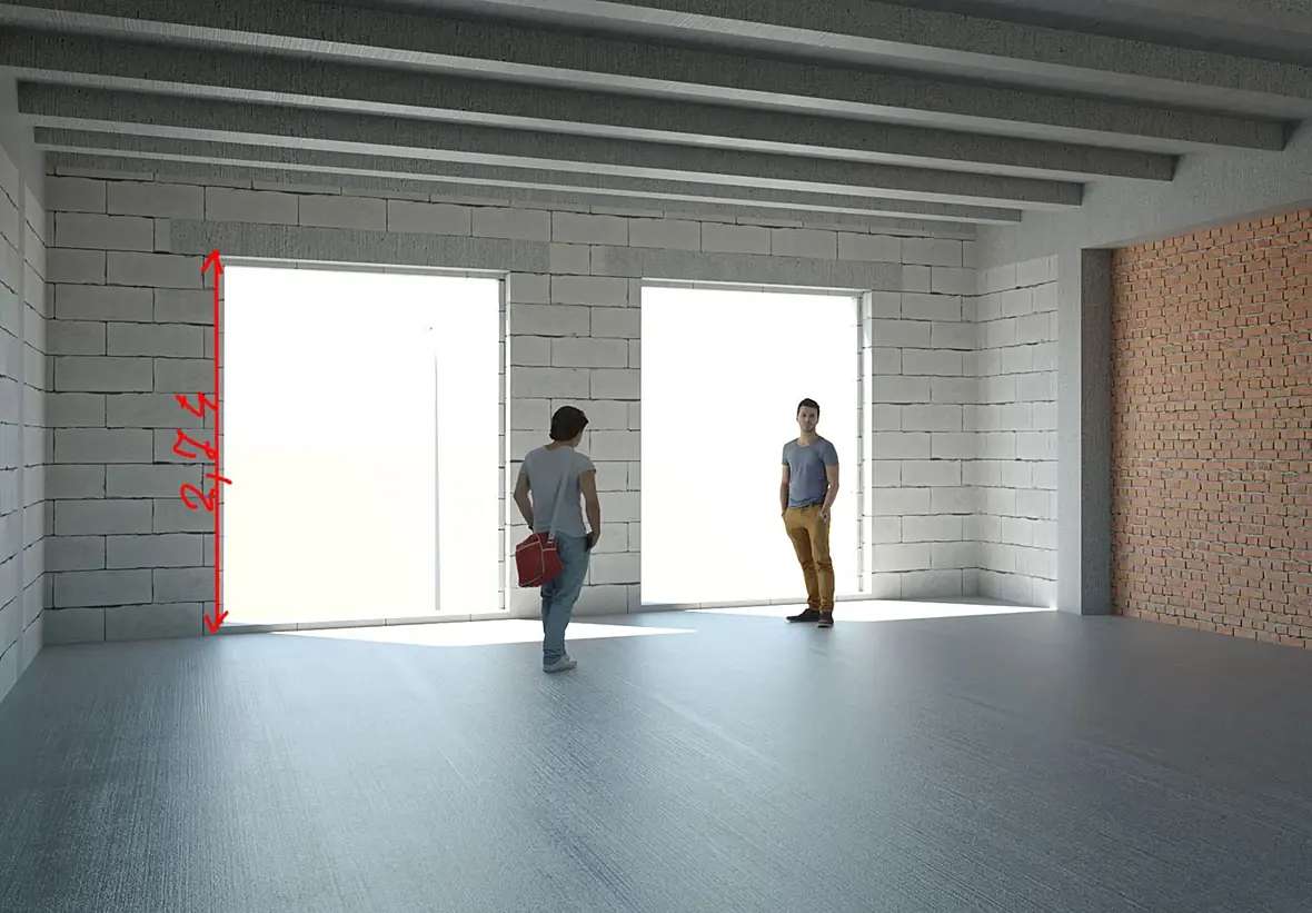 Вроде норм, но, есть одно но, в реале, это ой как высоко, да и потолок в итоге опустится. В общем принимаю решение, снизить проем на один блок, а это грубо 250мм, о чем уже в 9:00 и сообщил производителю, я конечно злодей, весь мозг вынес, но не до такой же степени, что бы люди делали бесполезную работу. Они тут же дали ответ, что при такой высоте это возможно, так как подобное уже делали. Створок можно сделать не три а две. Плюс какое хочу открывание, такое и будет, хоть просто распашное, хоть с откидыванием. Ура, я доволен, они тоже.