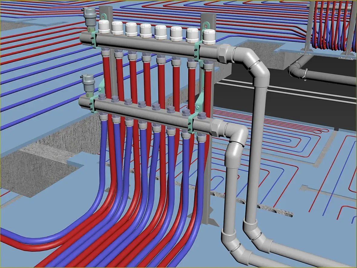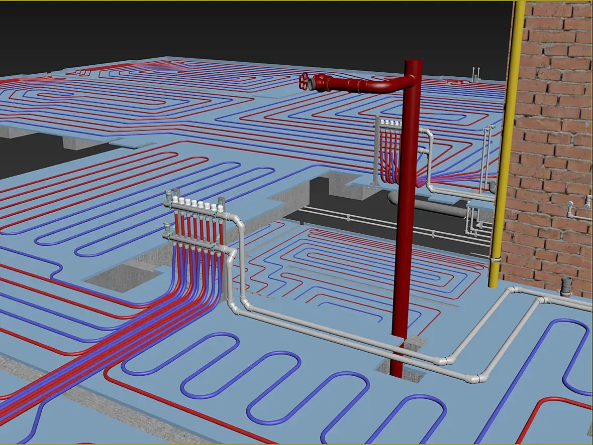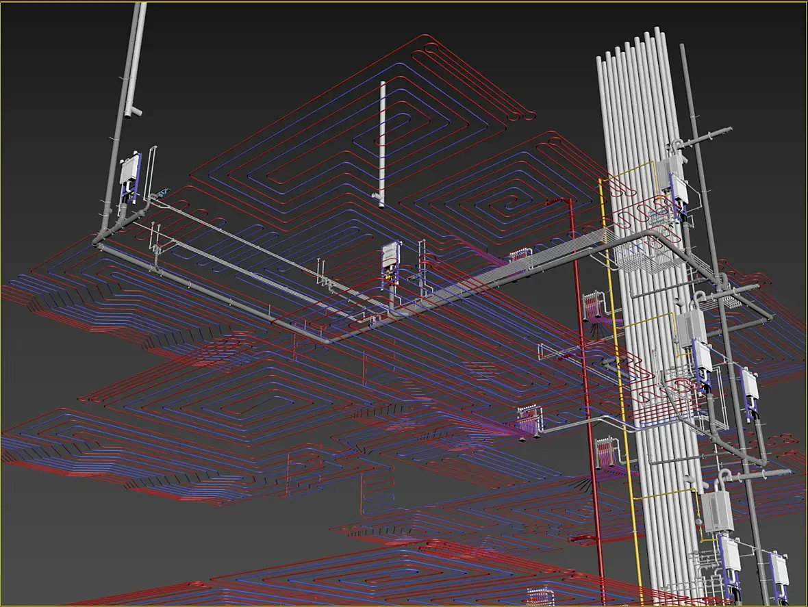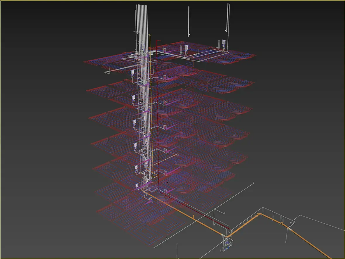 Тут еще вовремя освободился подрядчик по отоплению, с которым мне все это и согласовывать, он добавил изменения в сечение труб подачи и обратки. В итоге получилось так: