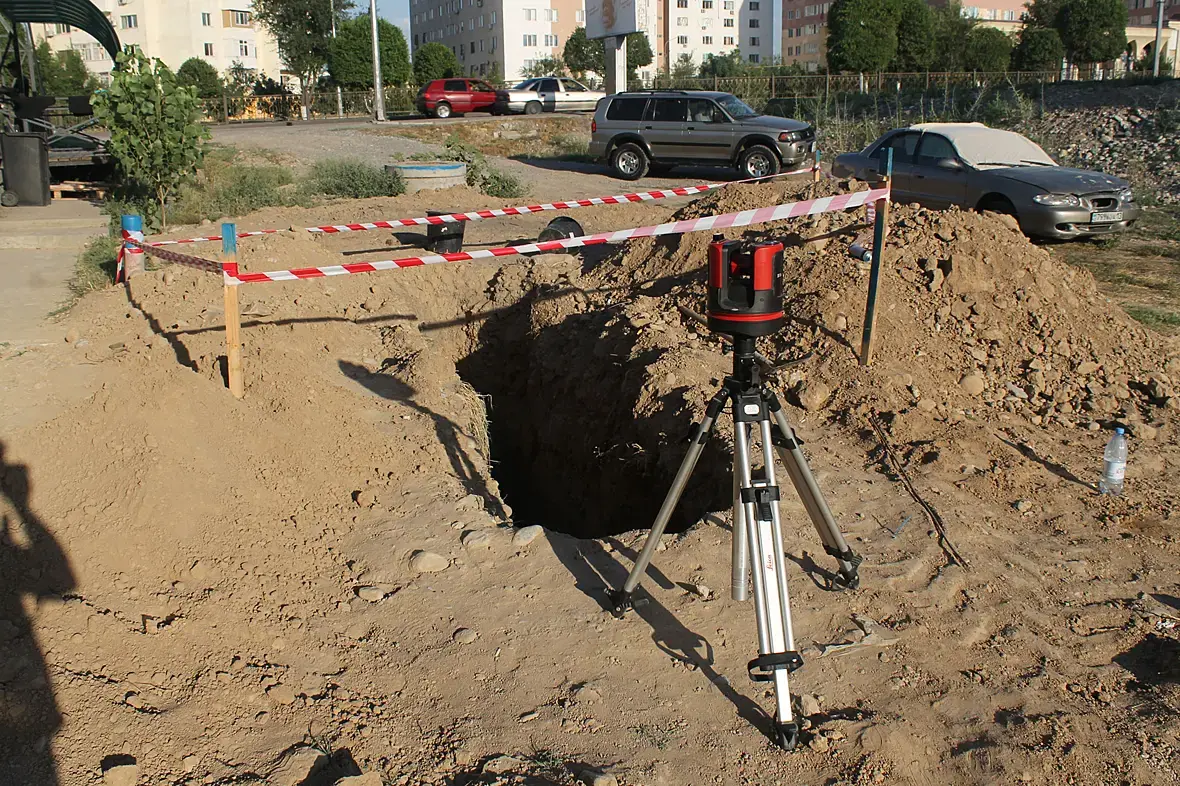Обидно, что пришлось долго ждать, обидно от того что многое потом пришлось переделывать, я то все это время работал. Почему-то подрядчик ни как не хотел решить этот вопрос, как выяснилось в день когда я с ними был на площадке, причин было две, не хватало выделенных средств, от чего люди бросали работу и уходили и не могли найти, не смотря на то что я объяснял где посмотреть, что бы понять координаты. И как обычно чудо было близко, диз на площадке и сумма гонорара увеличена до приемлемой, сходили посмотреть куда я посылал раньше и все готово. Даже огородили и покрасили трубы, что бы видно было лучше, правда когда приехал замерять выяснилось, что какие то любопытные ширились вокруг и засыпали все грунтом, пришлось чистить самому до состояния того что вы видели на фотографиях. А это важный момент, так как чем выше погрешность тут, тем больше я ошибаюсь далее, строю-то невидимую часть по векторам.