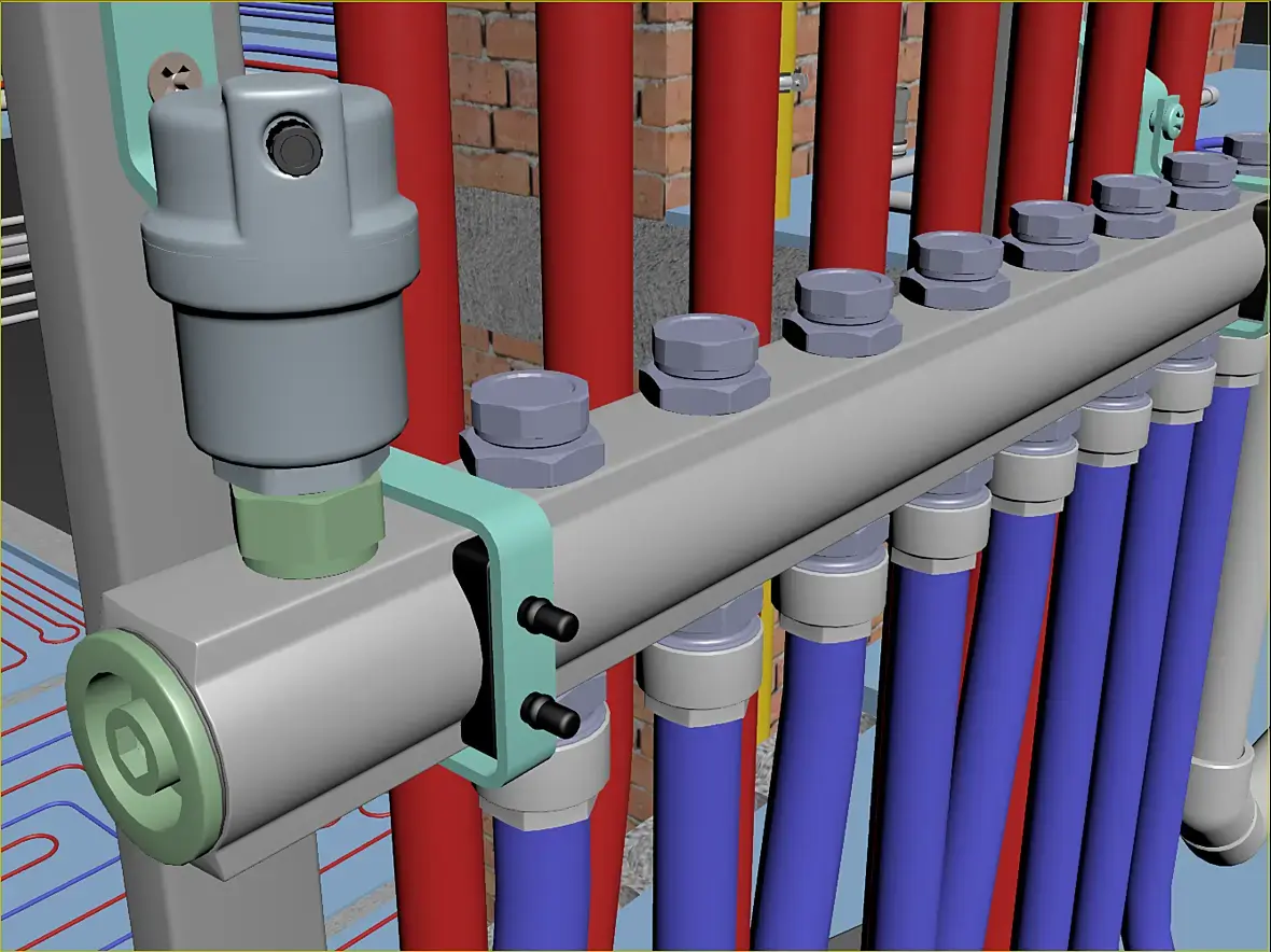 А пока по основному проекту, я занялся вновь водоразборным узлом, как и планировал, начал менять местами в вертикальной плоскости трассы с теплоносителем и коллектора ГХВС.