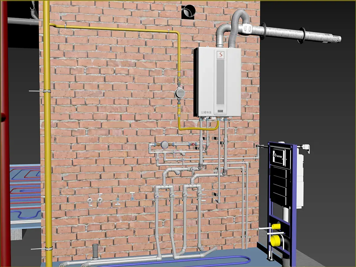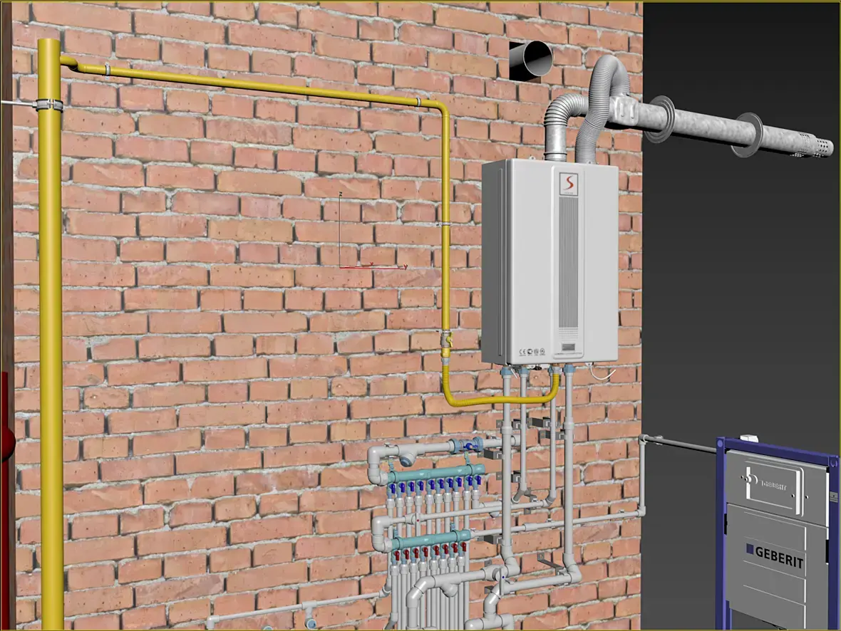 И отвечает за ГВС и отопление вот этот красавчик, знаю точно, некоторые вспомнят эту модельку котла, она делал для другого проекта