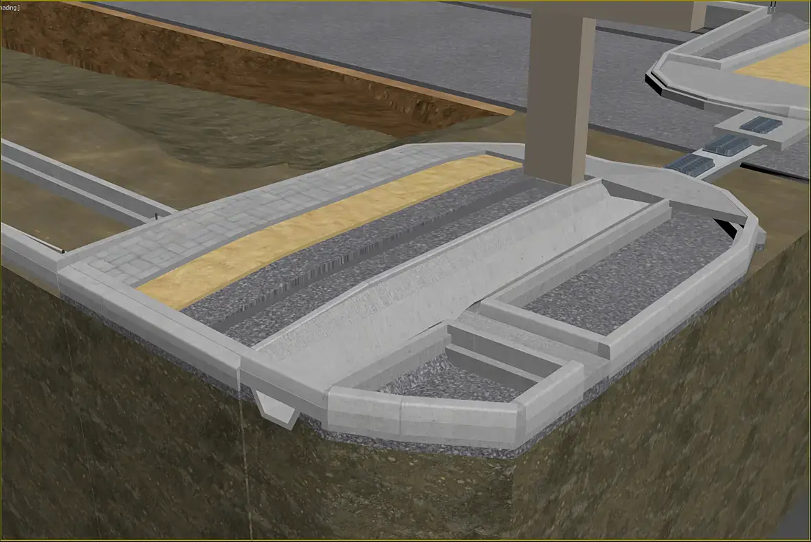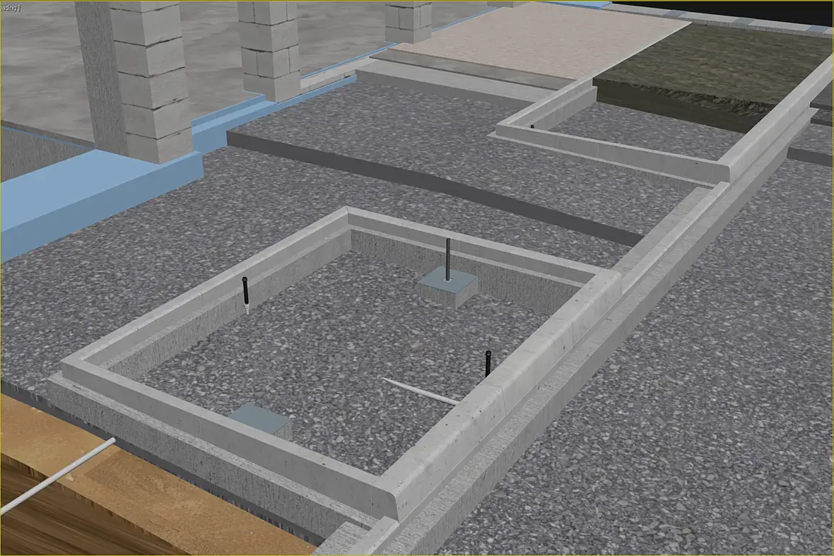 Как итог, по мимо прочих корректировок, у нас появился еще один этаж, рабочее название бункер, он полностью подземный, и закладывается перекрытие с учетом нагрузок не только от грунтов но и от грузового транспорта с грузом. Забегая вперед сразу напишу, была полностью закончена работа по грунтам и прилегающей территории, о ней позже, но отголоски вы будете видеть в виде опорных стен для грунта, фундаментов для осветительных столбов, стел и так далее... Общая структура: