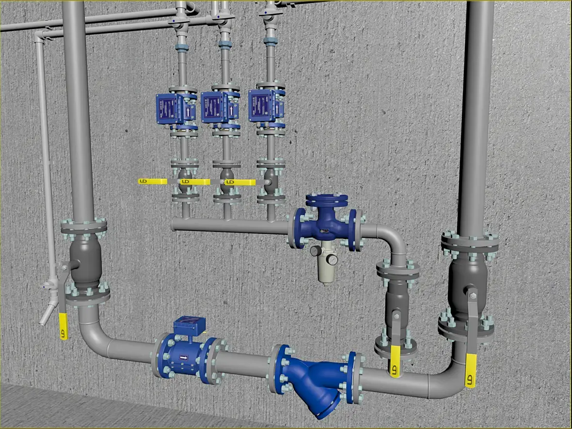 Коллекторы отопления и кран пожарного гидранта