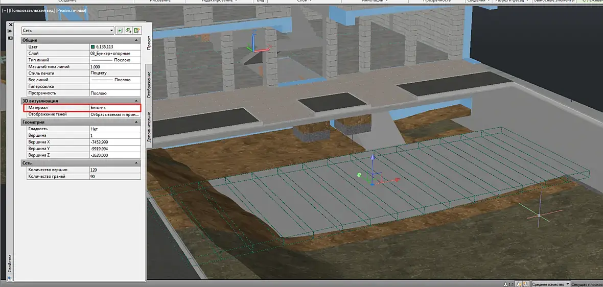 Так как автокадчик из меня еще тот, кривое наложение текстур я так и не победил, но главное что меня устроило, это то, что материалы прописаны