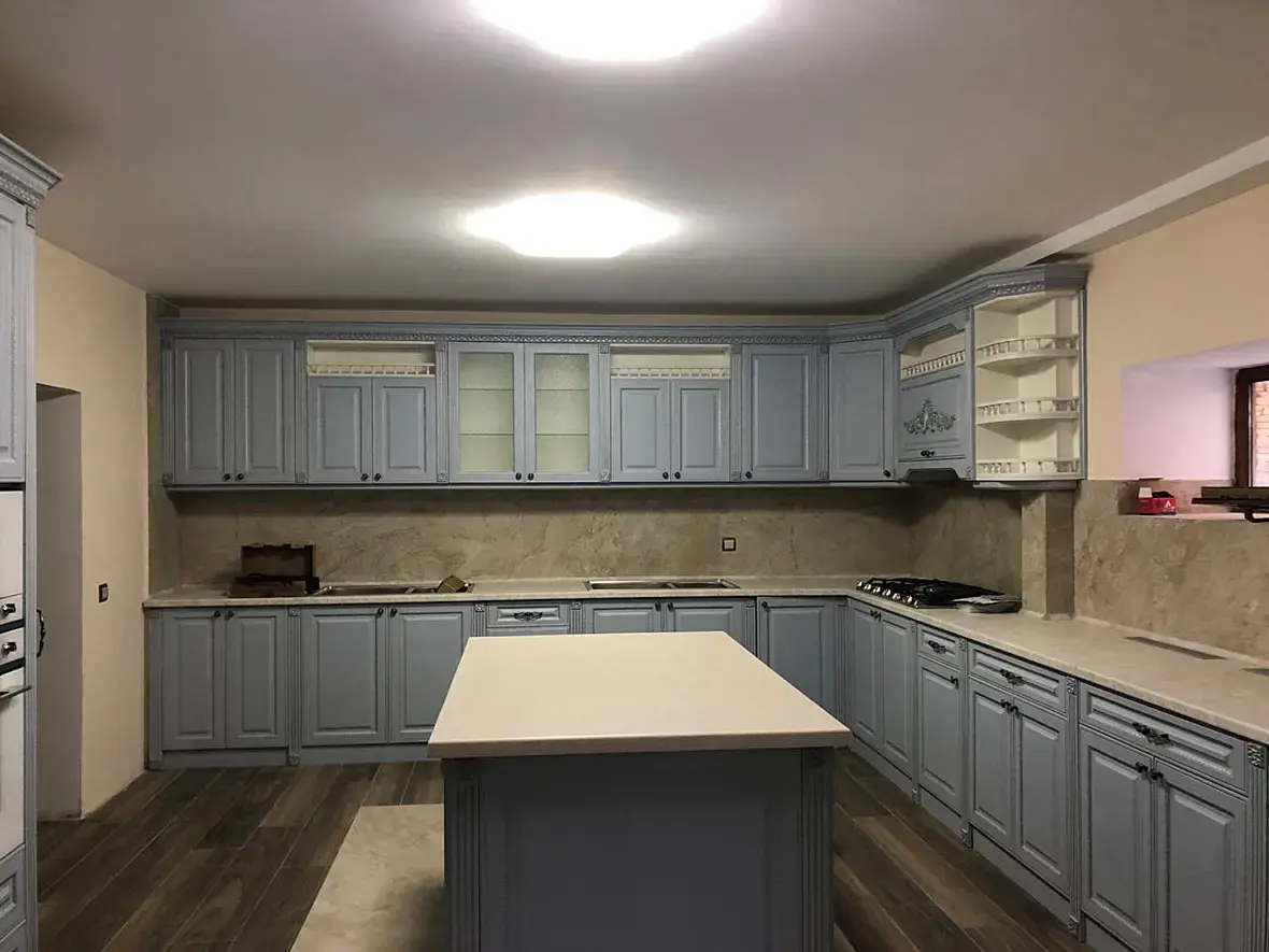 3) Сказано сделано, приехал, посмотрел. Пригласили представителя мебельной, пригласили ответственного за отопление и прочую "трубную жизнь" у заказчика. Тут же на месте решили что инженерку перепиливаем, ну сами представьте один из самых явных трешей, батарея, от пола до её верха 1100, если грубо и мне говорят что она будет под столешницей. Нормально? Как по мне так не очень. Ну и те трубы которые пересекали фартук, полностью было решено ликвидировать. Представитель мебельной вроде счастлив, там еще по мелочи в его сторону облегчения жизни прилетели.
