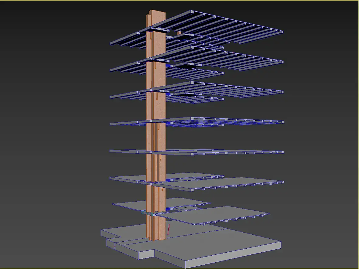 За счет того что она имеет одинаковые размеры на этаж, она замечательна, скопировал с небольшими корректировками по отверстиями и все. И наверное из за того что я это всегда видел, так и сделал. Показал все конструкторам, претензий нет, все ок. Показал заказчикам, такая же реакция. Но мне она все покоя не давала, во первых вот этим узлом, сопряжения с перекрытием, было так: