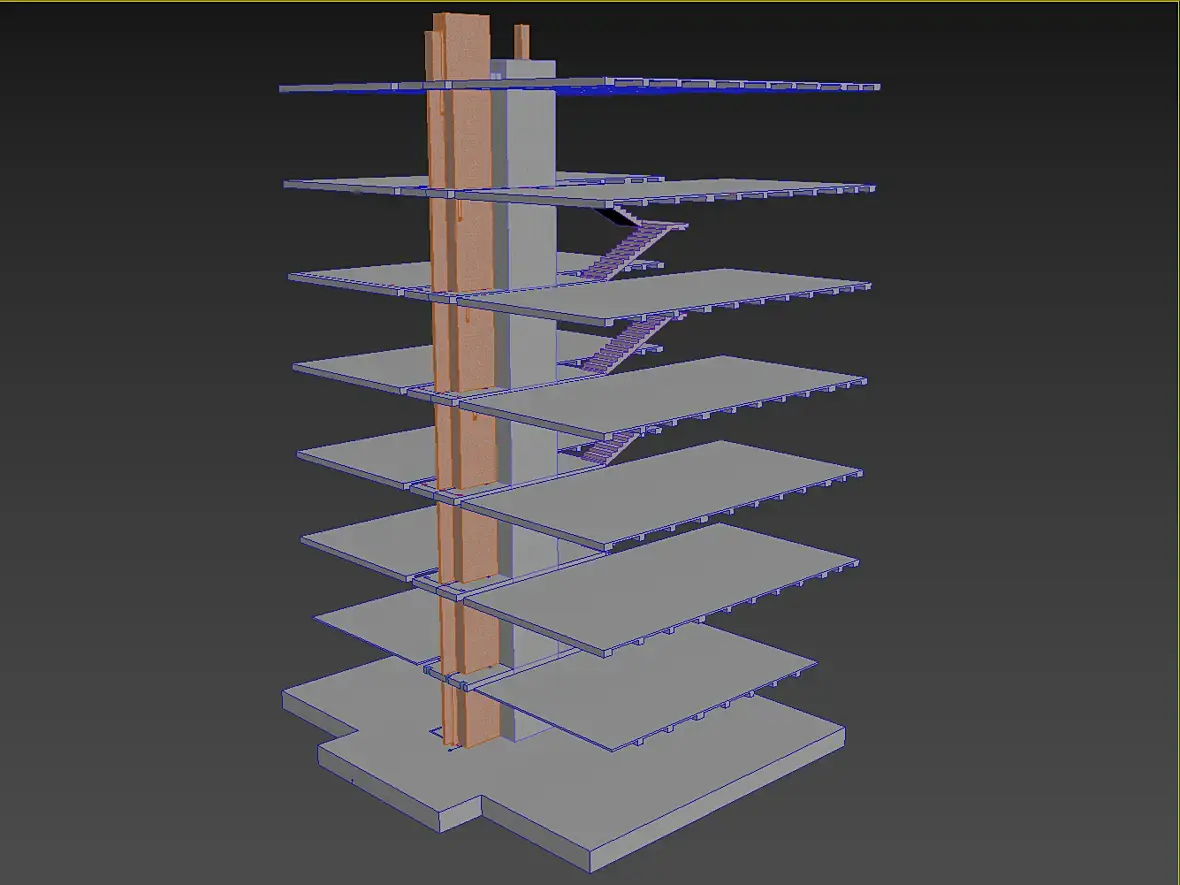 За счет того что она имеет одинаковые размеры на этаж, она замечательна, скопировал с небольшими корректировками по отверстиями и все. И наверное из за того что я это всегда видел, так и сделал. Показал все конструкторам, претензий нет, все ок. Показал заказчикам, такая же реакция. Но мне она все покоя не давала, во первых вот этим узлом, сопряжения с перекрытием, было так: