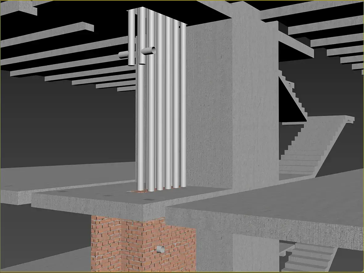 Итог, конструктора не против, я доволен, по экономии получилось три с копейками кубометра кирпичной кладки, а это значит дешевле и главное быстрее, то же касается и сопряжения-прохода перекрытия, оно на мой взгляд так же стало более технологичным. Плюс получаю хоть какое то пространство на нижних этажах, которое можно использовать в технических и хозяйственных целях.