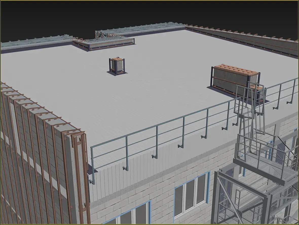 С кровлей можно сказать все, осталось проработать шахты вентиляции. В двух цветах кровля не для красоты. Идея у меня следующая, так как регион южный, основная проблема все же с жарой и солнцем, отсюда белый цвет основной кровли, собственно так же как и вент фасад, где хочется больше поток воздуха, и так далее. Но климат резко континентальный и зима все же бывает со снегом и морозами, а кровля у меня имеет очень скромные уклоны, по этому там где вероятнее всего может случится протечка не смотря на все мероприятия думаю сделать максимально темный цвет, в идеале черный матовый, днем то солнышко жестко греет и его много, вот думаю пусть там в первую очередь все тает и сушится. Думаю хуже точно не будет. А основной объем, будет летом больше защищать от солнца за счет белого цвета. Опять же холодный чердак с хорошей вентиляцией этому поспособствует.