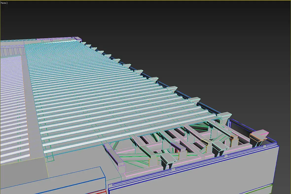 Конечно же, как только появился фасад, его нужно подружить с кровлей, да и на верхних формообразующих тоже кровля есть. Смотрим что получилось: