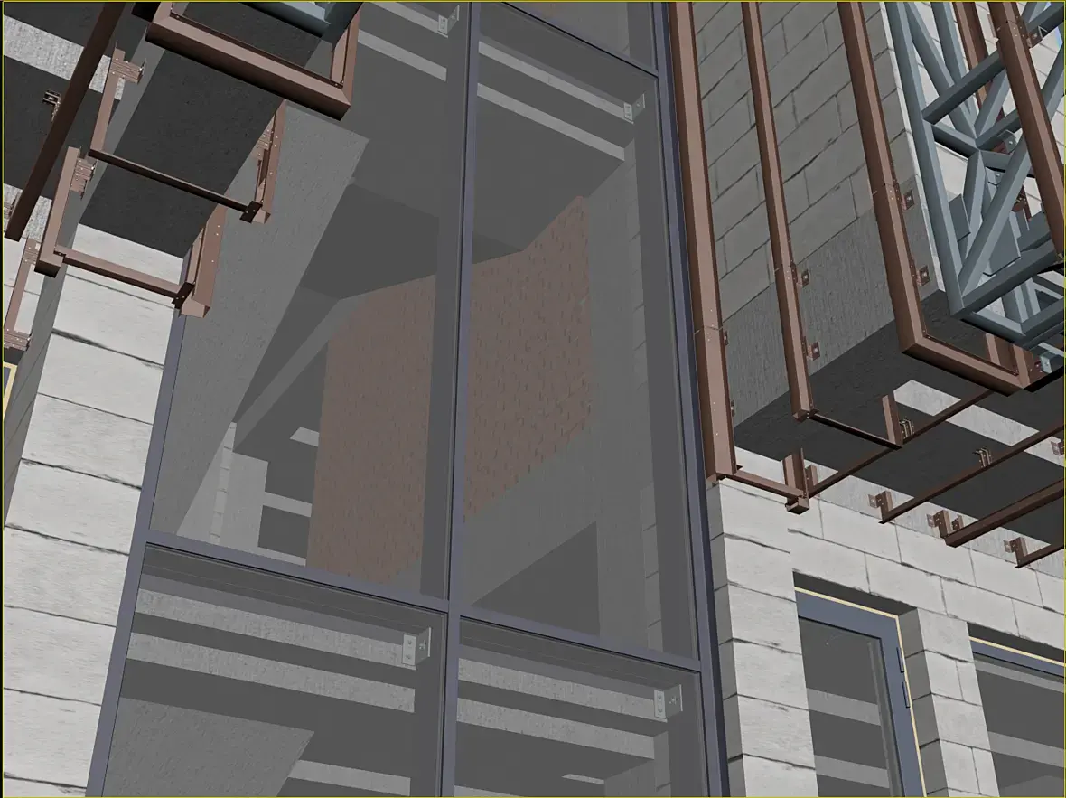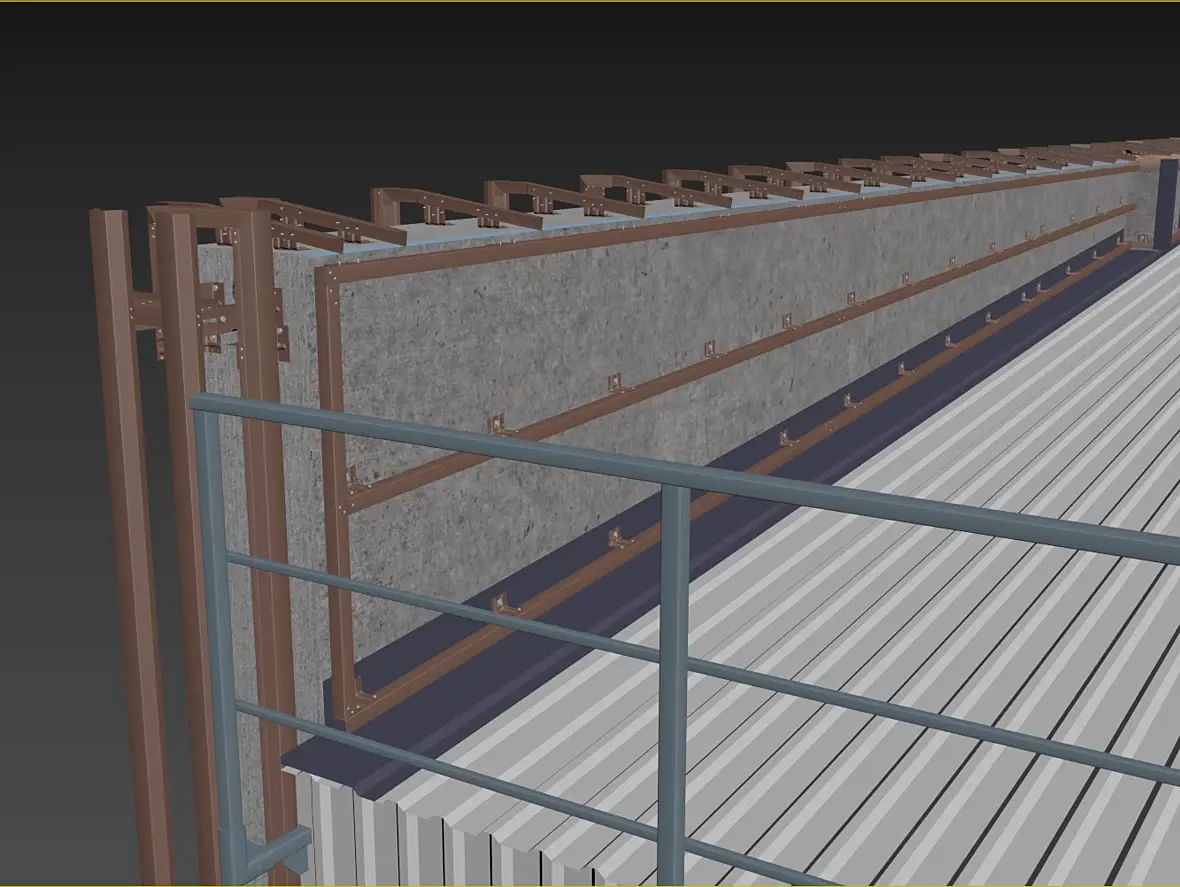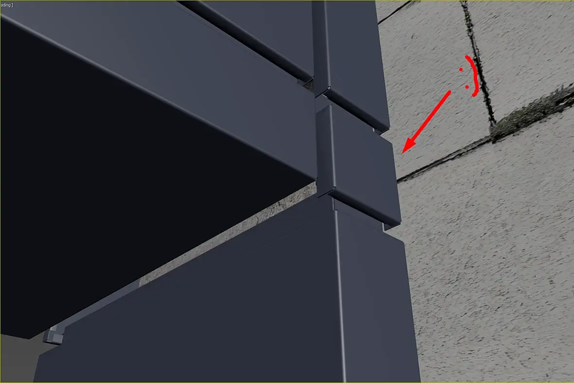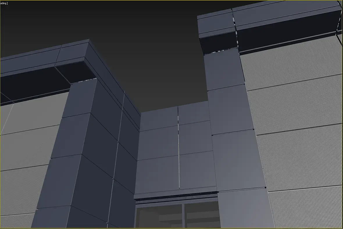 Само собой, уклон у нас идет из-за кровельной части этого козырька, и тут тоже было где повозиться, давайте разберу чуток. Вот этот же узел в сборе, кстати перфорированные кассеты основного фасада предполагаю 50 мм, остальные 25 мм, для того что бы сократить количество вертикальных элементов, надеюсь это даст пройти по ветру на изгиб кассеты за счет большего ребра.