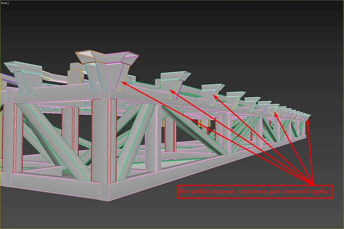 И если мы посмотрим на ребра и трубу слева то увидим что они формируют, трубу сделал прозрачной: