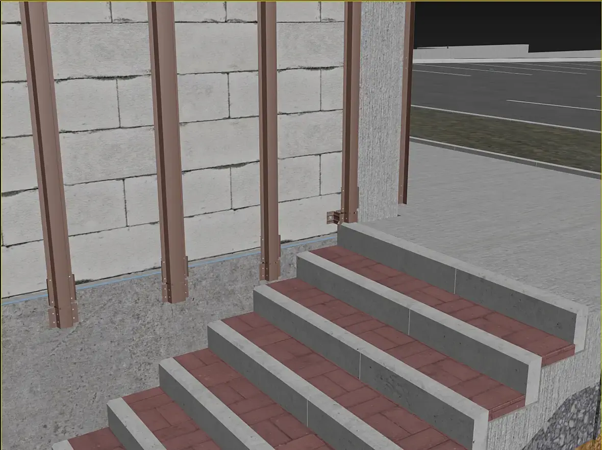 И потом, мне однозначно захотелось что бы консоль не просто висела, а все же как то соприкасалось все это с основанием, да и вот от этого здания, хотелось прикрыться